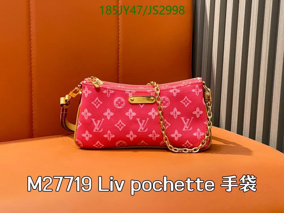 Louis Vuitton Pink Monogram Canvas Baguette Bag with Gold Chain, 24x13x6.5 cm