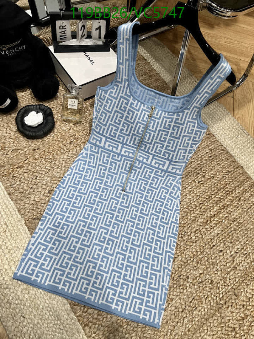 Tags: Balmain Clothing Women, Balmain Monogram Dress, Blue White Pattern Dress, Designer Knitted Dress, Knitted Mini Dress, Sleeveless Bodycon Dress