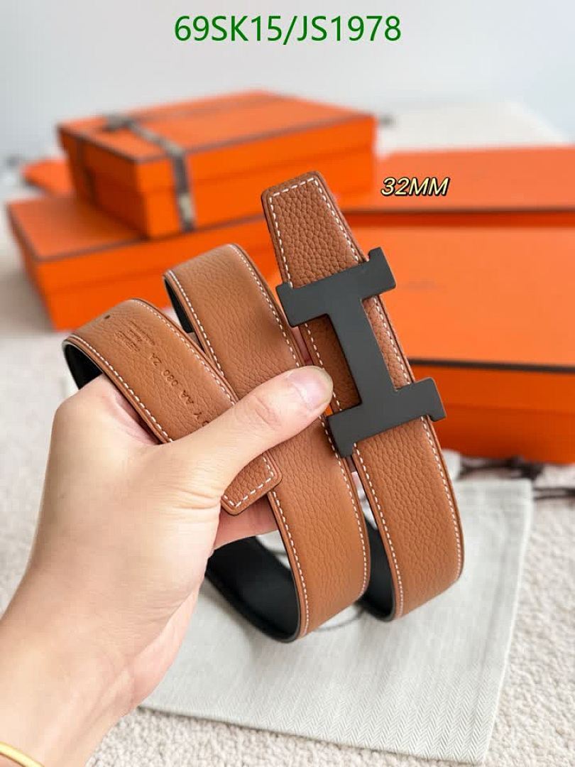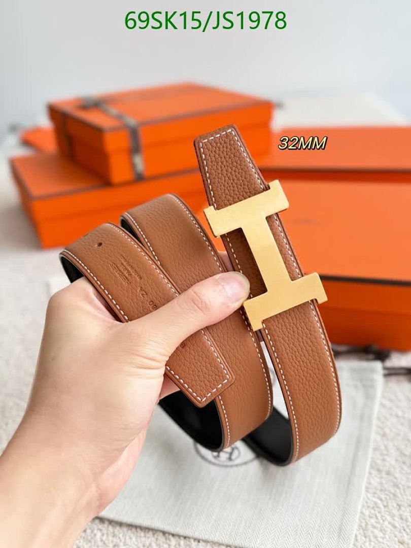 Hermes Reversible Leather Belt with H Buckle, 3.2cm Width, JS1978 Code