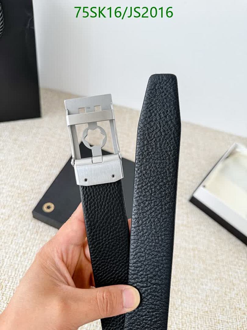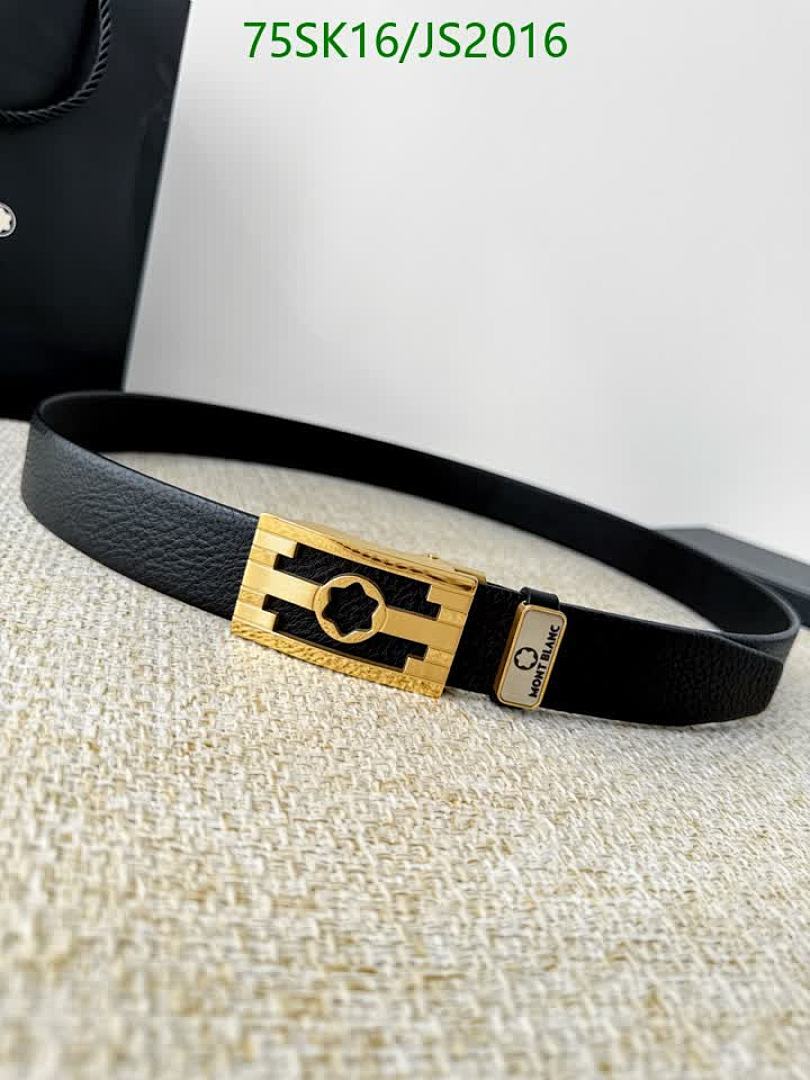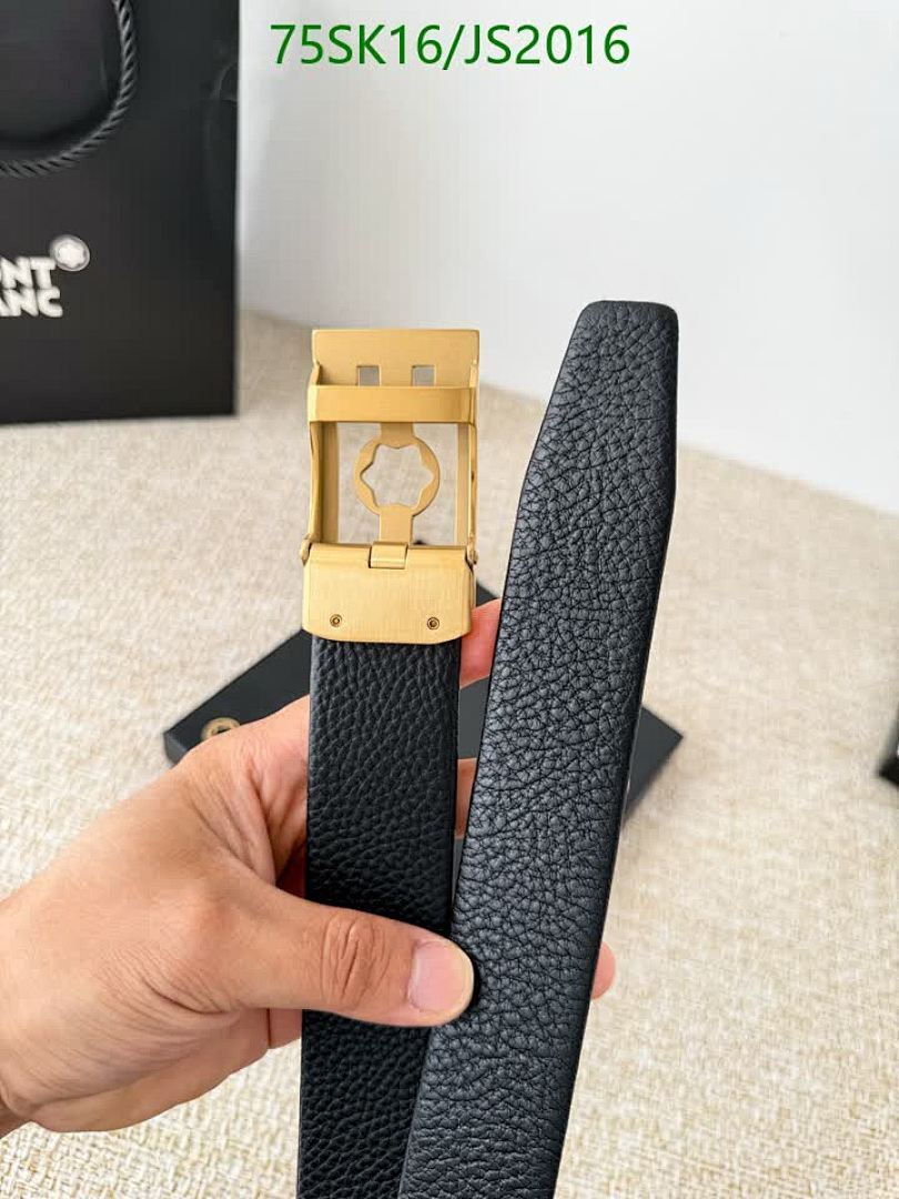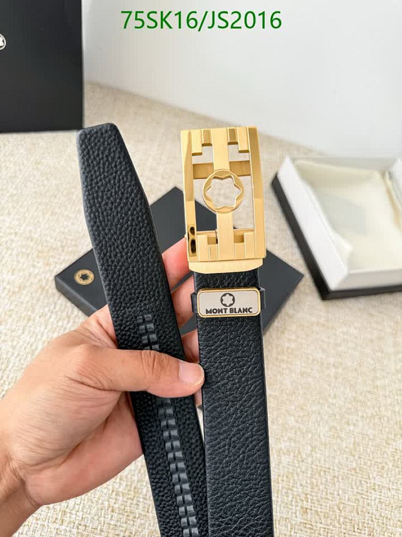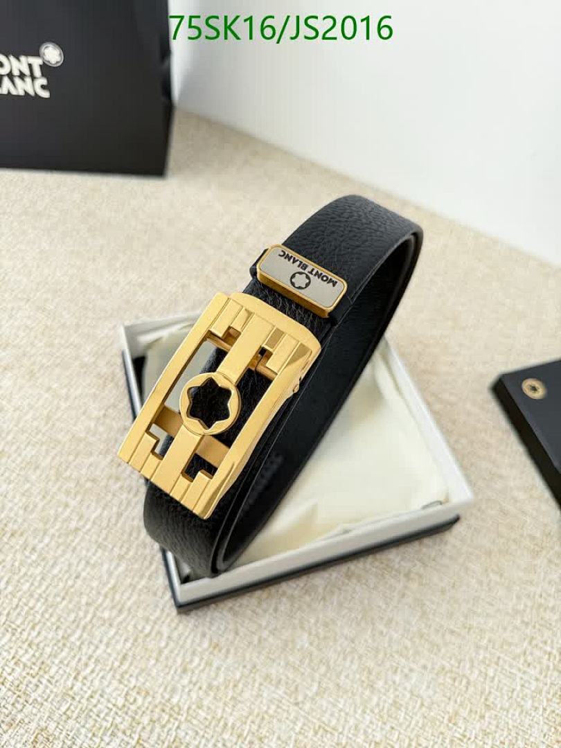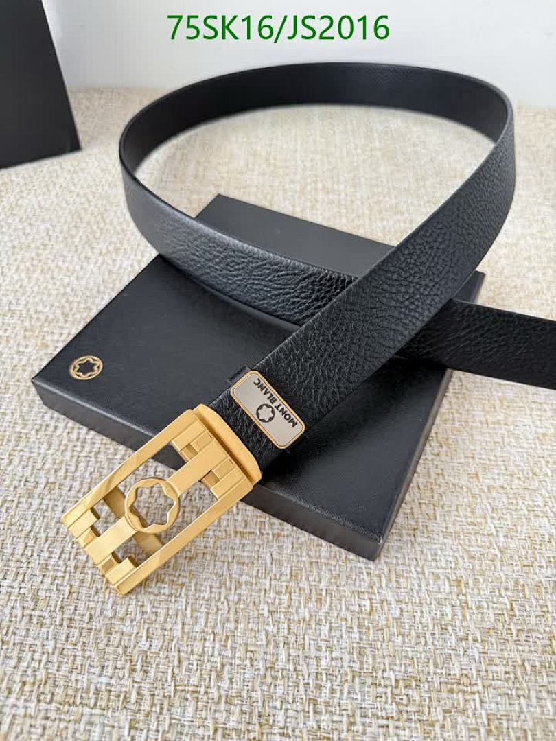Elevate your style with this Montblanc belt. Crafted from premium cowhide leather with a stylish gold buckle. Available in various sizes.
