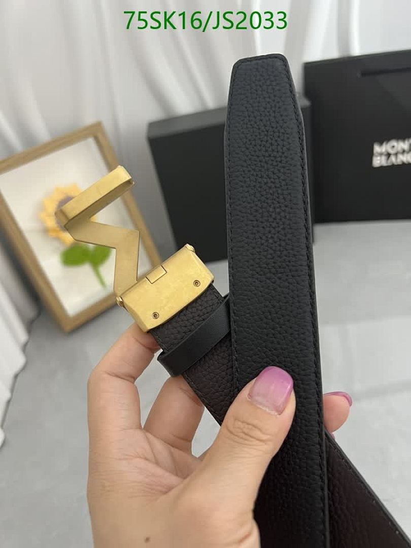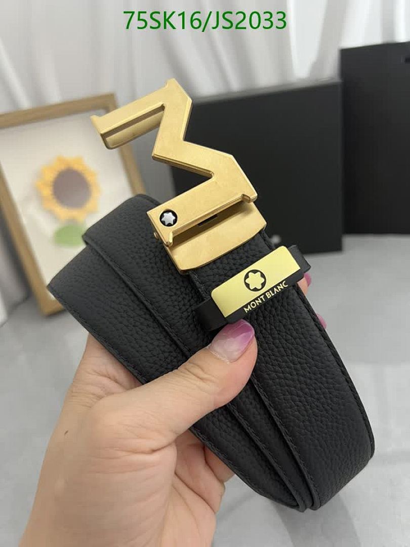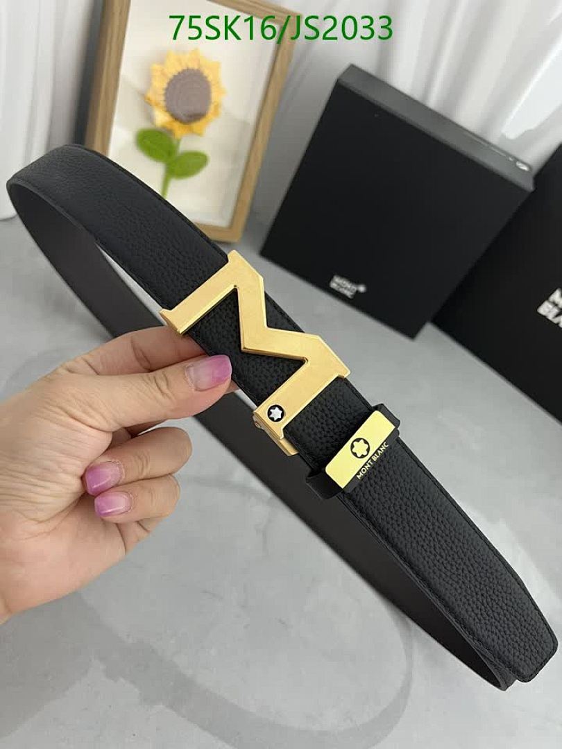 Montblanc Belt, Cowhide Leather, Gold Hardware, Width 3.5cm, Length 95-120cm