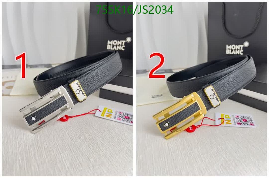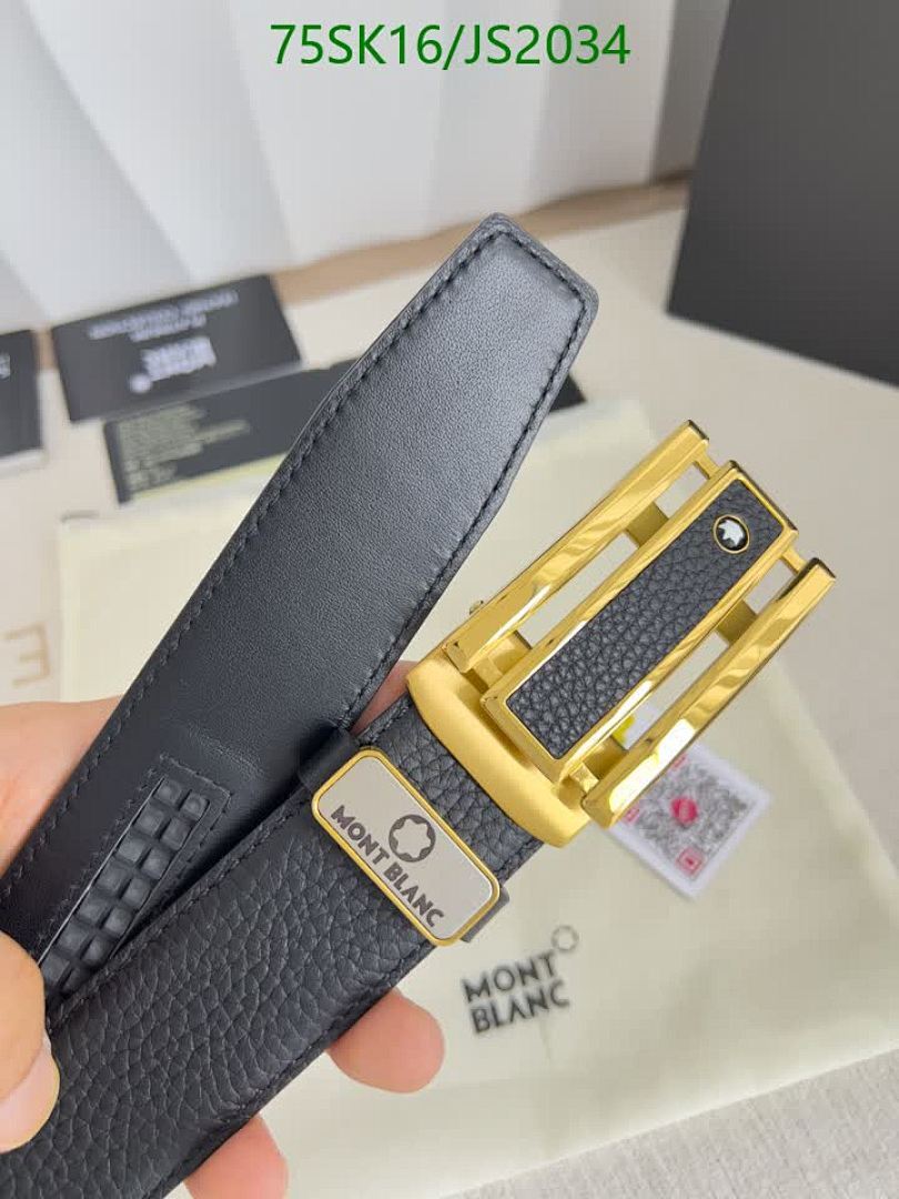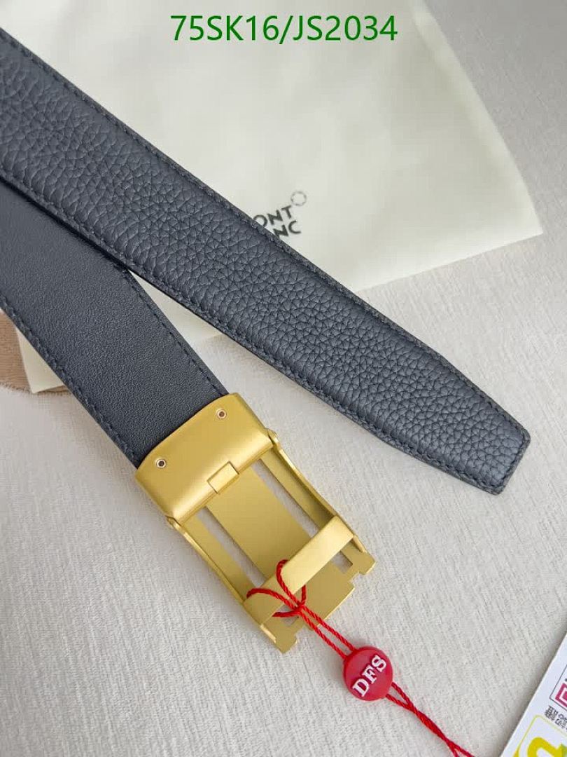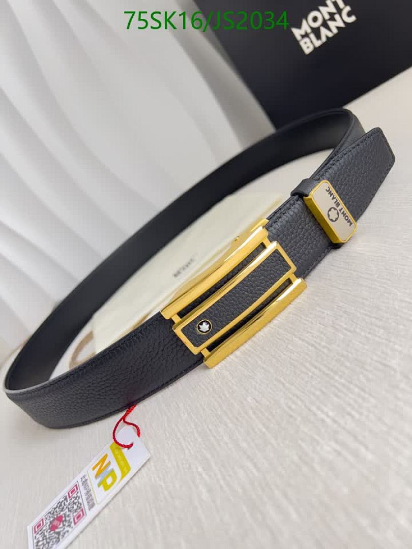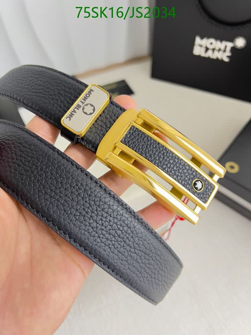 Montblanc Belt for Men, Cowhide Leather, Gold-Tone Buckle, Adjustable Size