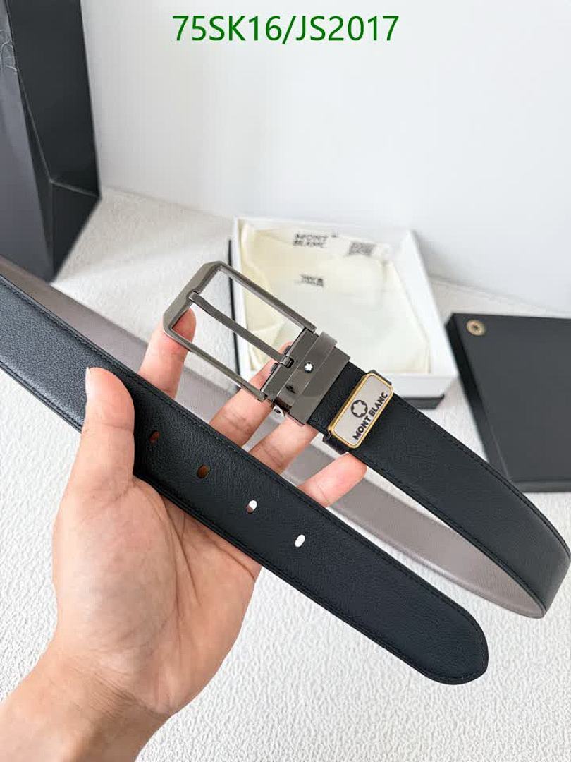 Montblanc Leather Belt - Gray Cowhide, 3.5cm Width, Adjustable Lengths