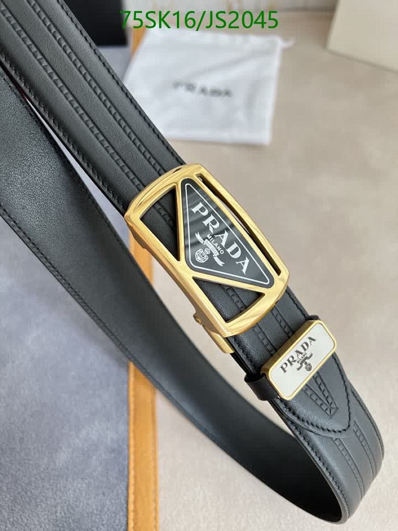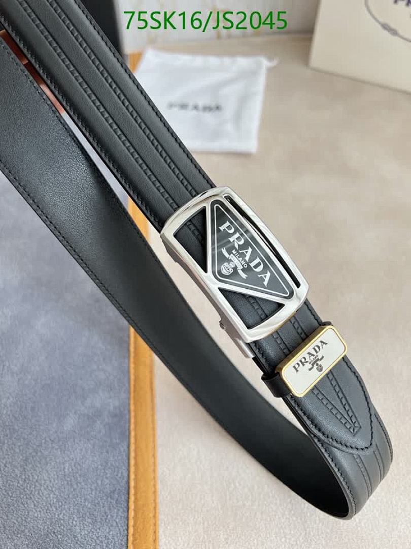 Prada JS2045 Cowhide Leather Belt with Iconic Buckle - Premium Quality