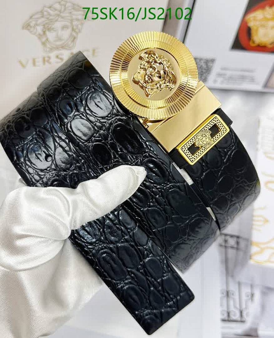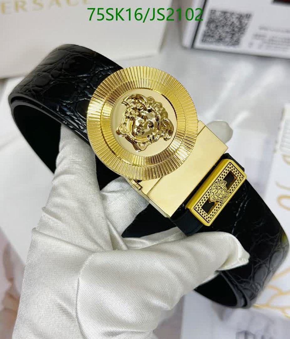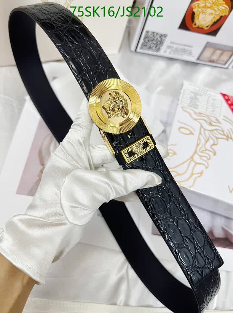 Elevate your style with this Versace belt. Features a Medusa buckle, crocodile-embossed leather, and adjustable length for a custom fit.