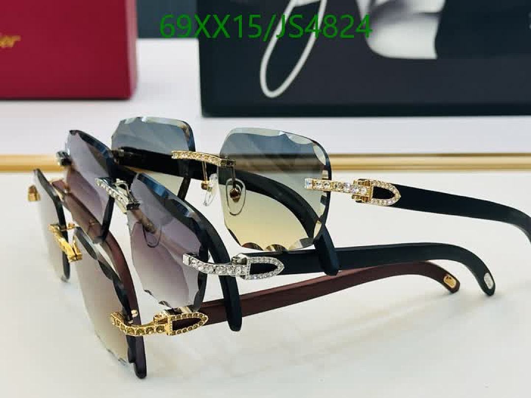 These Cartier JS4824 sunglasses are a statement piece, blending modern design with luxurious details. The rimless style and brown lenses offer a sophisticated look, while the diamond embellishments add a touch of glamour.