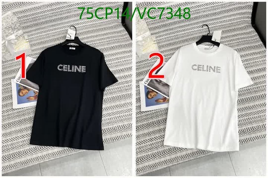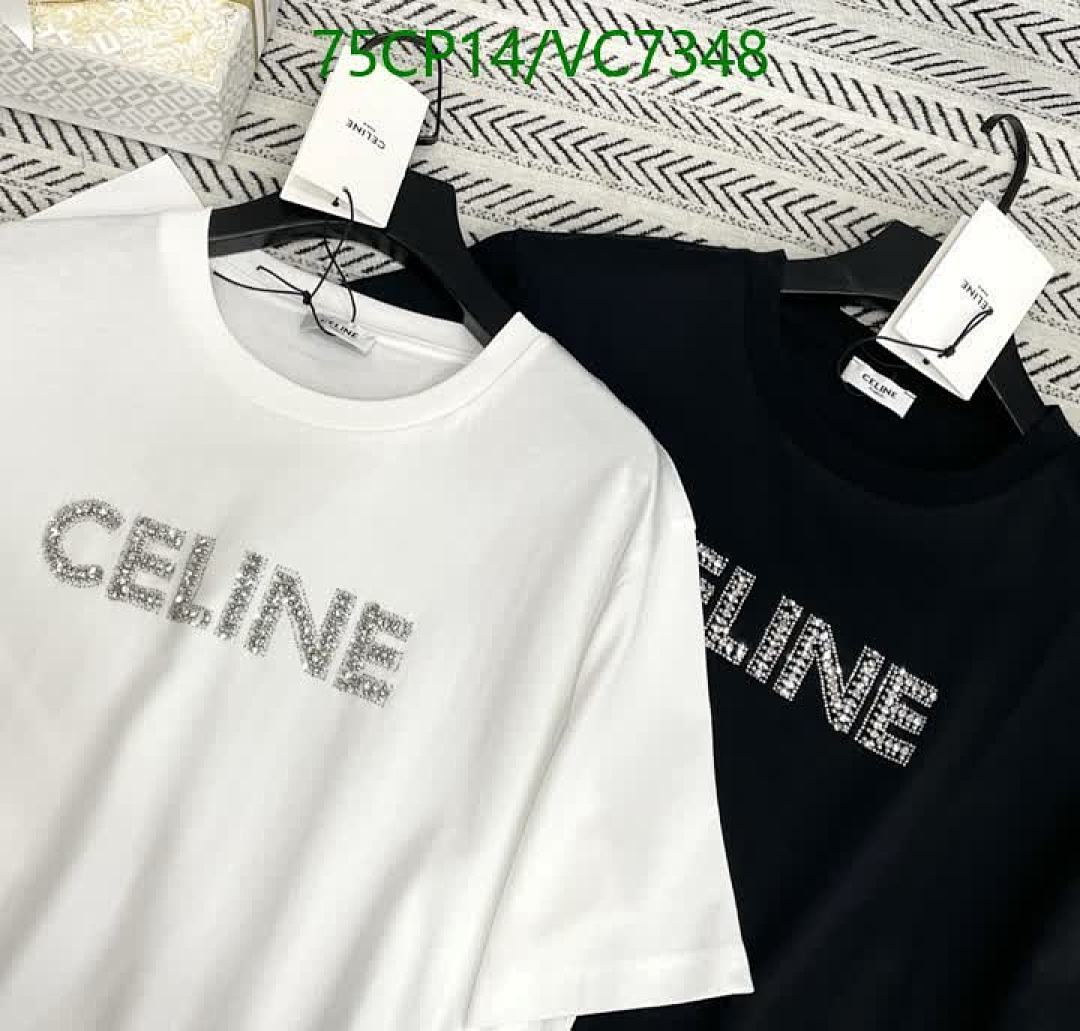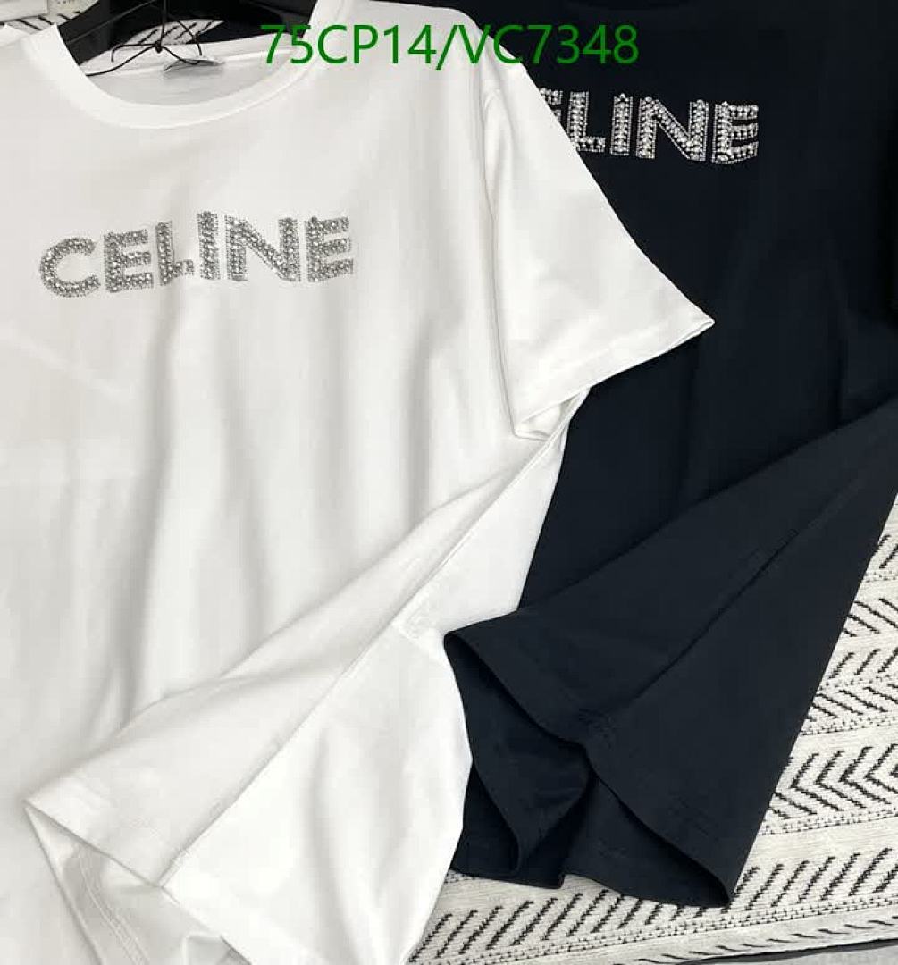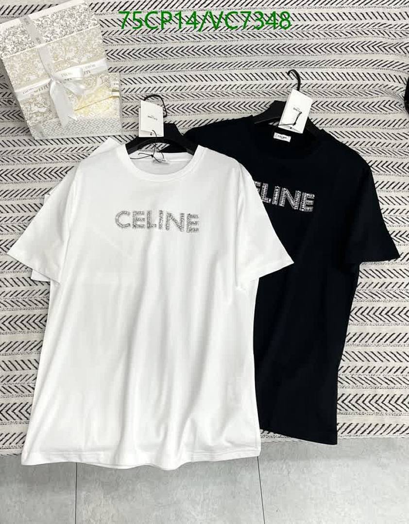 Tags: Celine Cotton T-Shirt, Comfortable Everyday Shirt, Designer Cotton Apparel, Luxury Brand T-Shirt, Rhinestone Logo Tee, Short Sleeve Casual Top