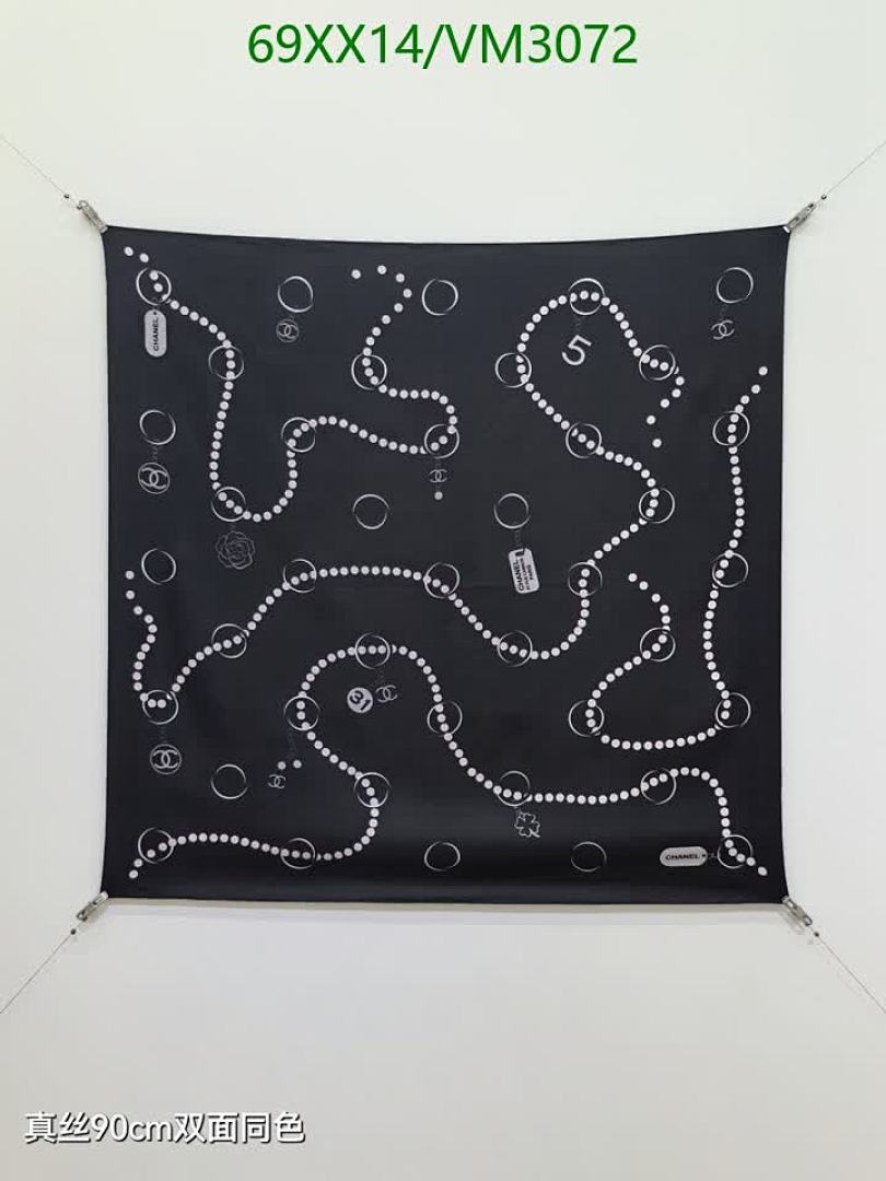 Elevate your style with this exquisite Chanel black silk scarf, featuring a sophisticated pearl and iconic logo print. Crafted from 100% real silk, this luxurious 90x90CM scarf offers versatile styling for any occasion.