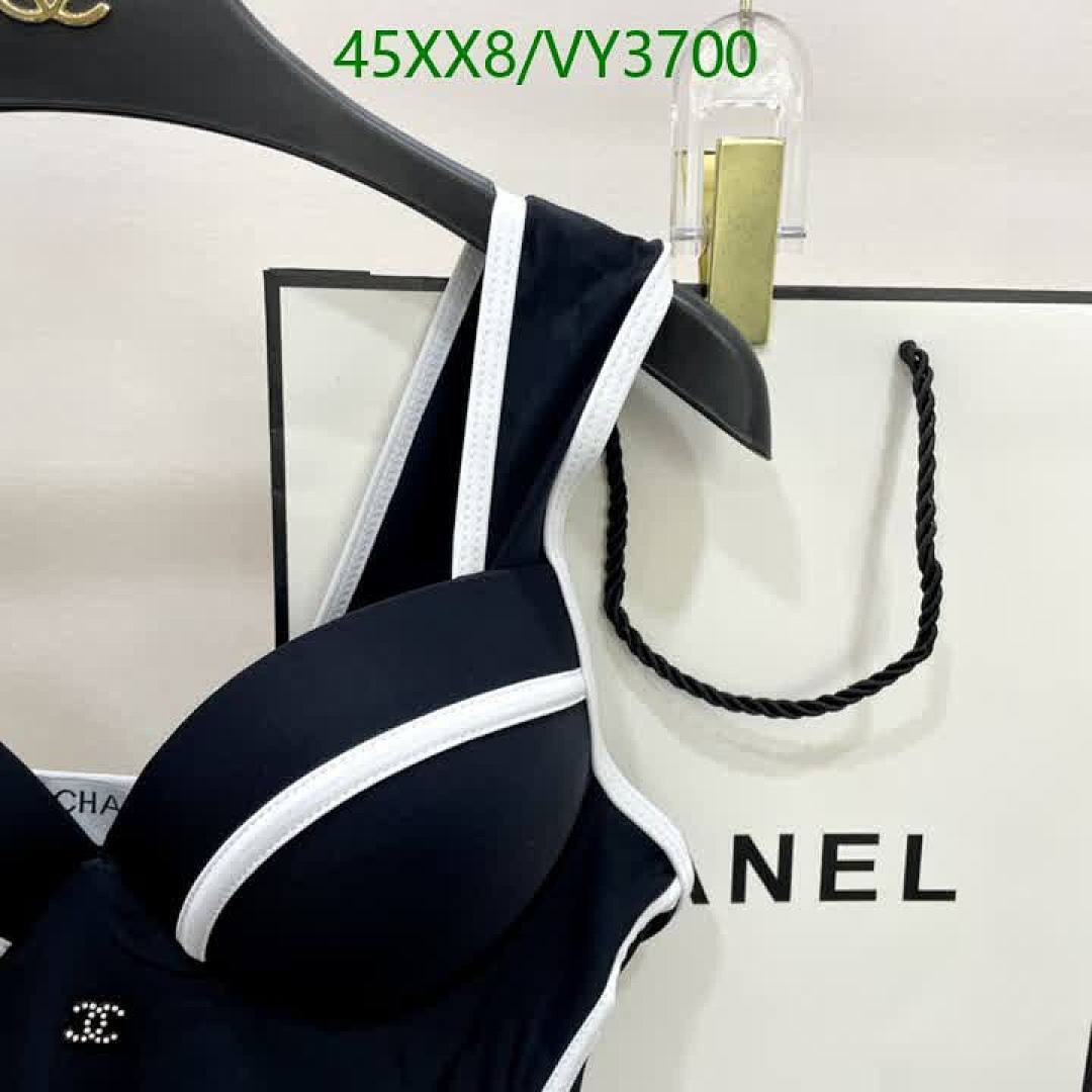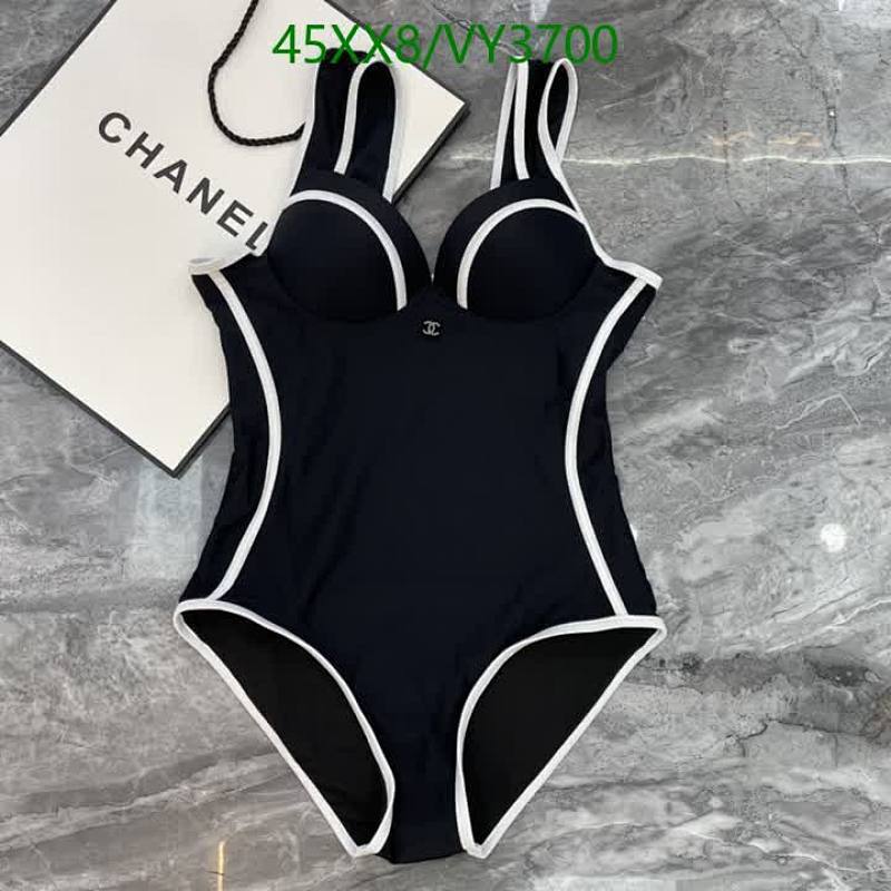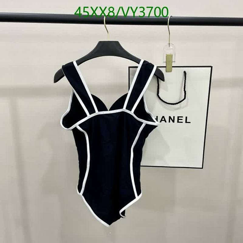 Dive into elegance with this Chanel one-piece swimsuit, featuring a sophisticated black and white design. Perfect for beach days or poolside lounging, this swimsuit offers a flattering fit and timeless style. Available in sizes S-XL.