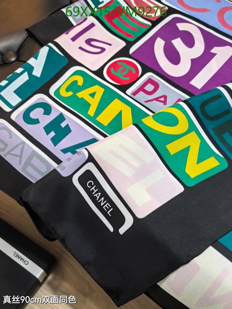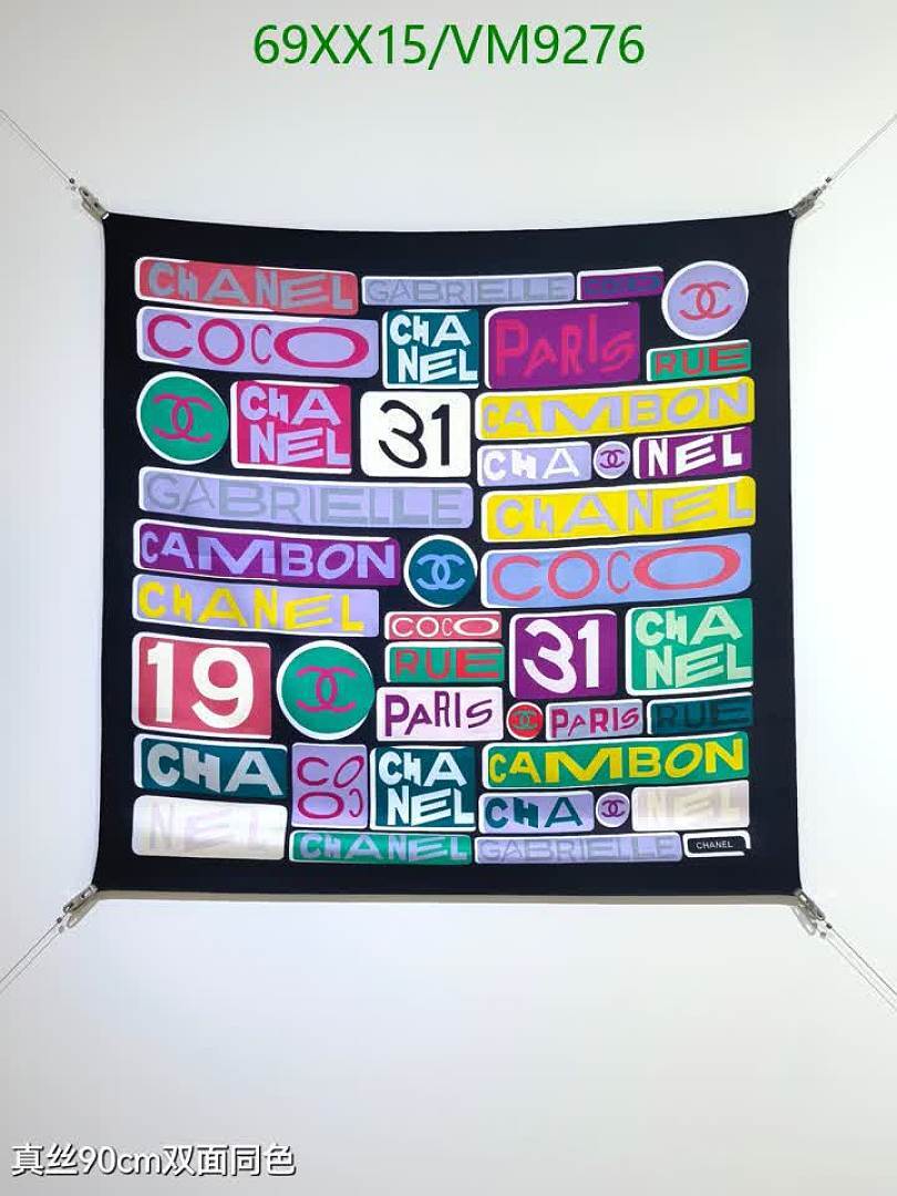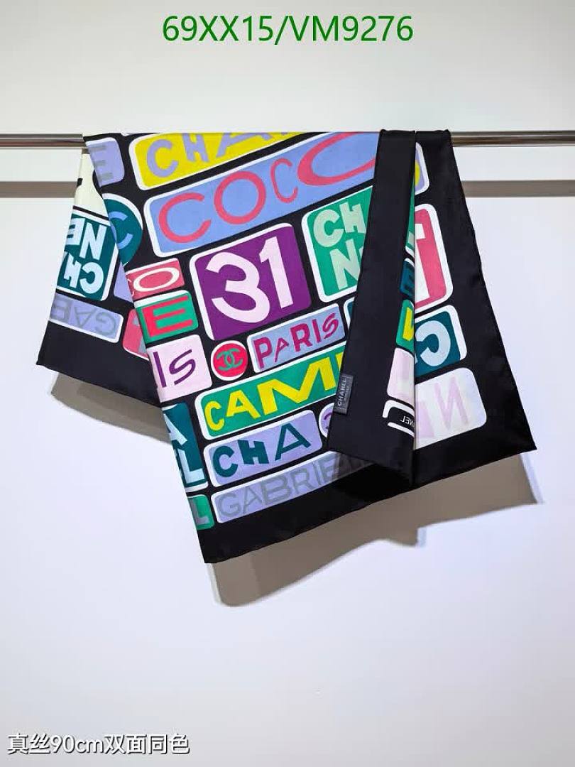 Chanel Silk Scarf 90x90cm - Elegant Black Multi-Color Logo Design