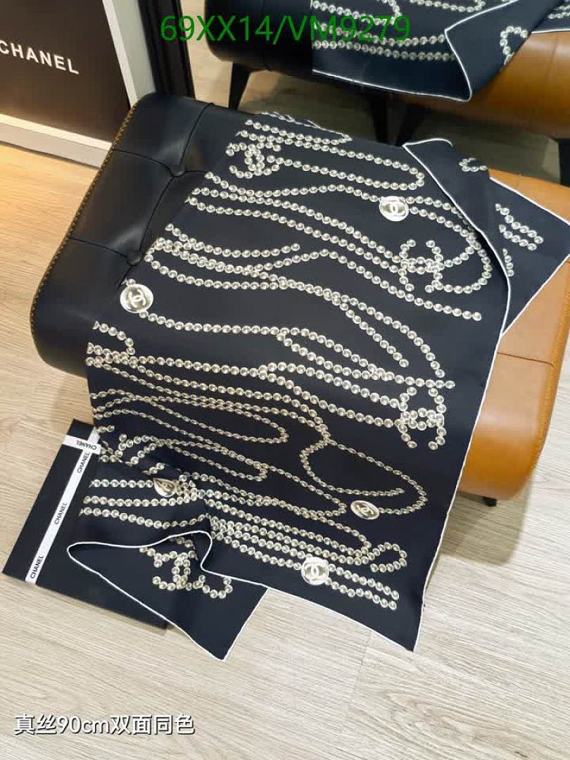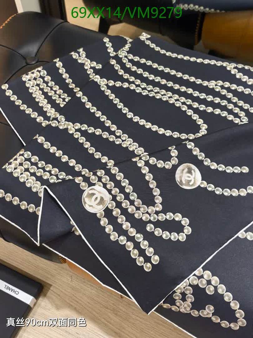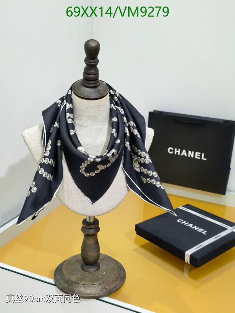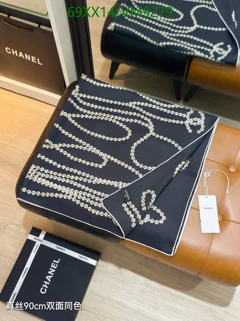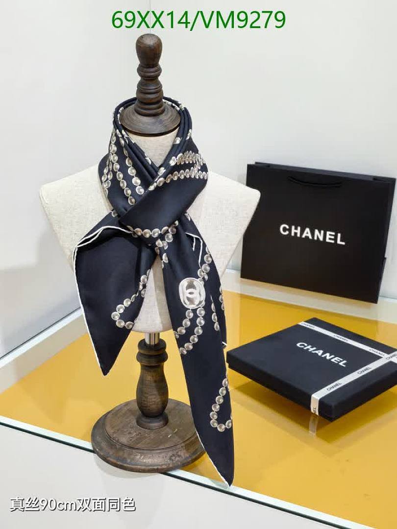 Elevate your style with this exquisite Chanel silk scarf. Featuring an elegant chain and iconic logo print on luxurious real silk, this 90x90CM scarf adds a touch of sophistication to any outfit. Perfect for year-round wear.