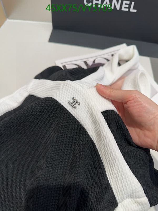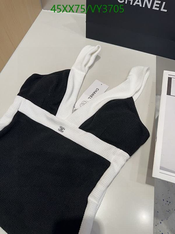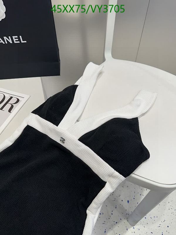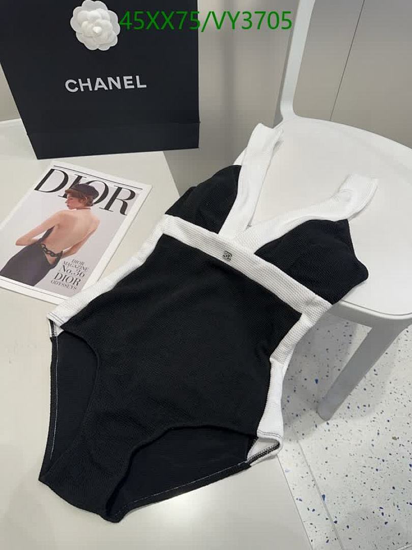 Embrace timeless sophistication with the Chanel Two-Tone V-Neck Swimsuit. This exquisite one-piece combines classic design with modern comfort, making it an essential addition to your swimwear collection. The striking black and white contrast offers a chic aesthetic, while the flattering silhouette ensures you look and feel your best, whether lounging by the pool or enjoying a day at the beach.
