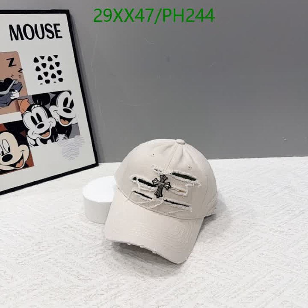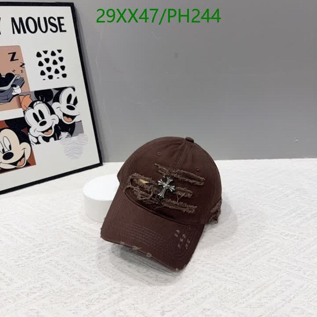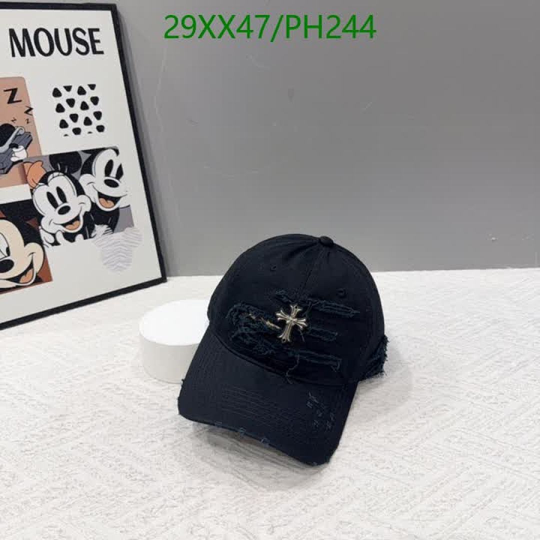 Tags: Chrome Hearts Baseball Cap, Designer Baseball Cap, Distressed Cross Patch Hat, Edgy Style Chrome Hearts, PH244 Hat, Streetwear Fashion Cap