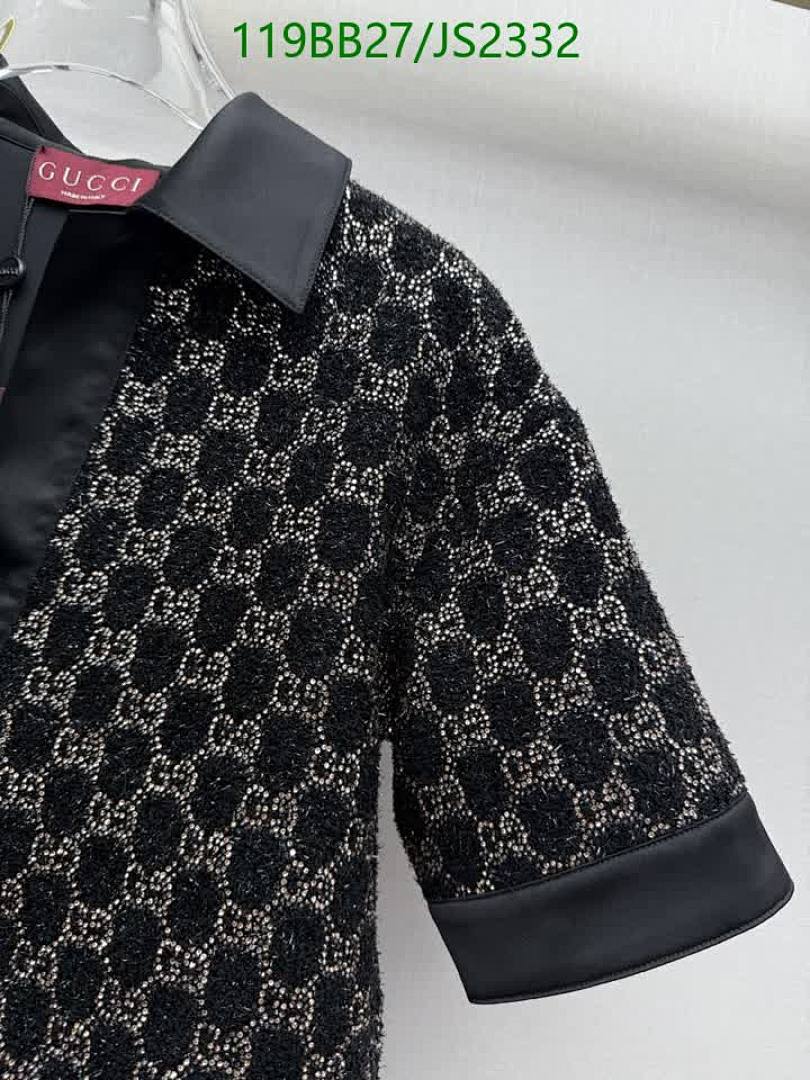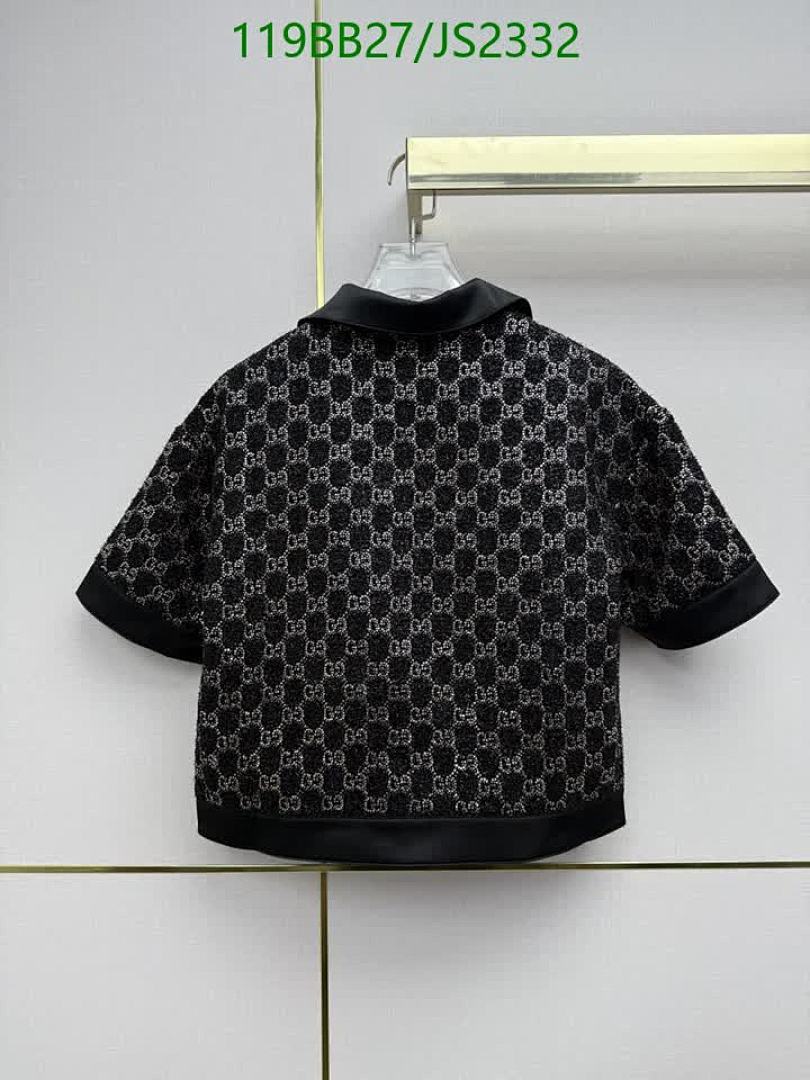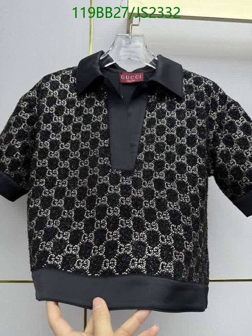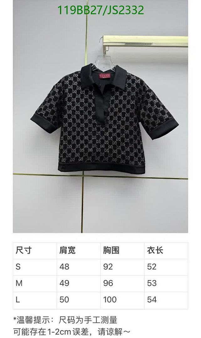 Elevate your wardrobe with this stylish Gucci polo shirt. Features a distinctive coarse woven pattern and short sleeves. Available in sizes S, M, and L.