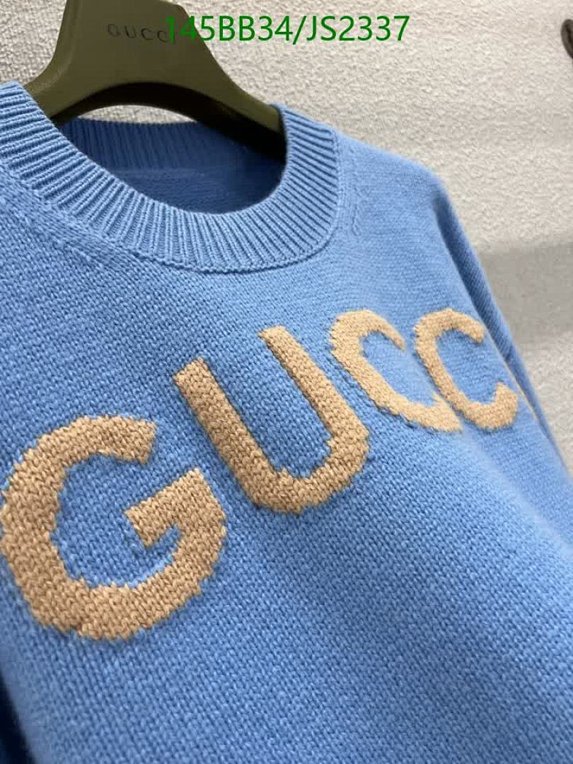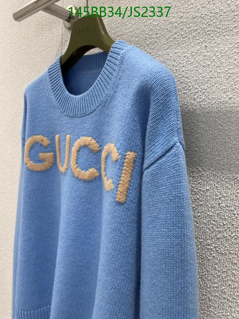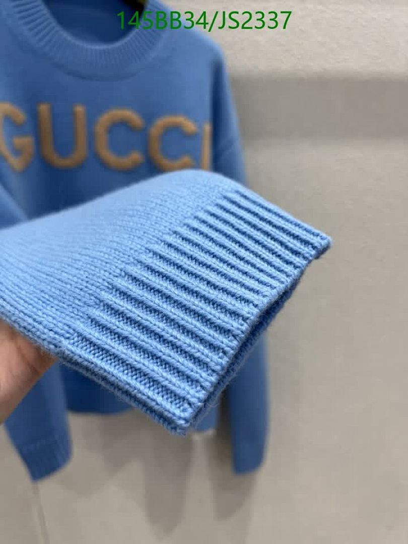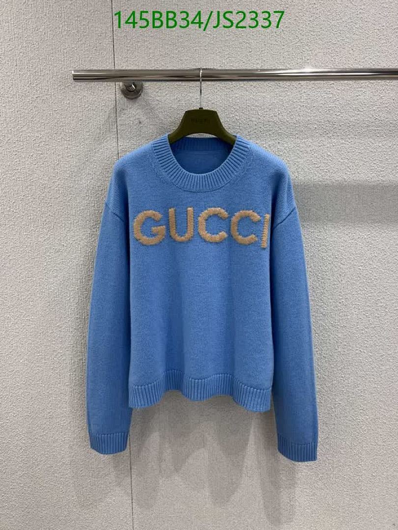 Gucci Wool Sweater Blue with Logo,Fashionable and Cozy, Sizes S-M-L