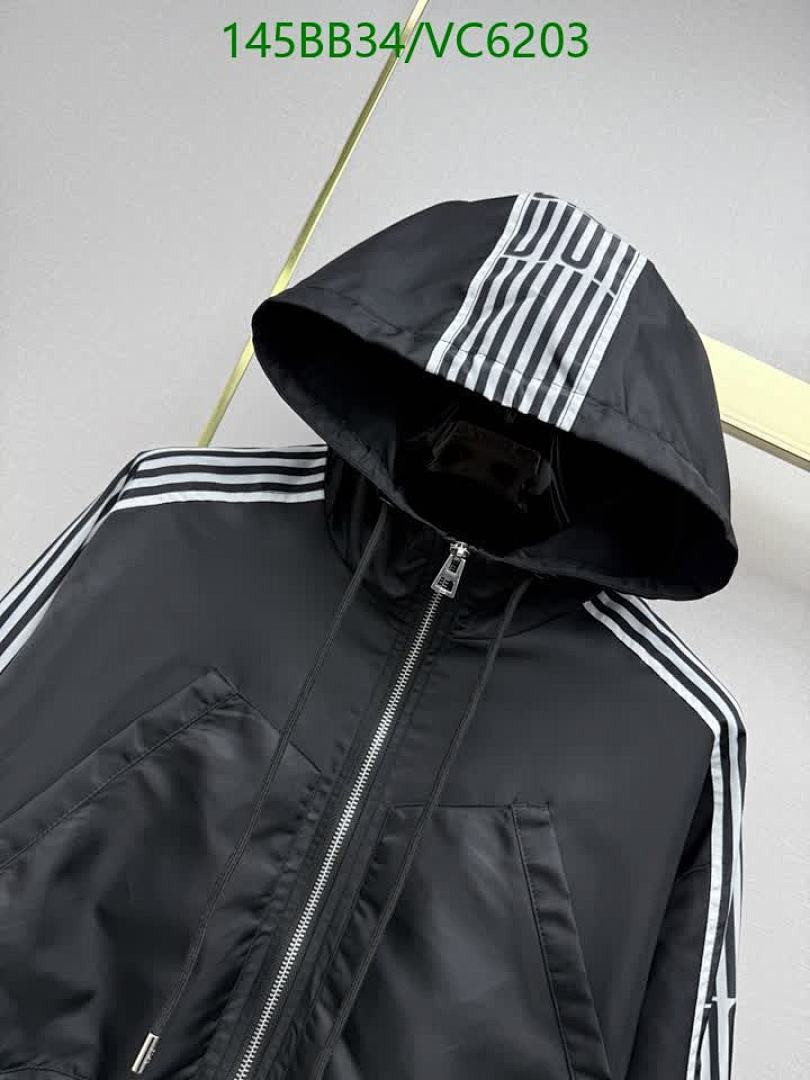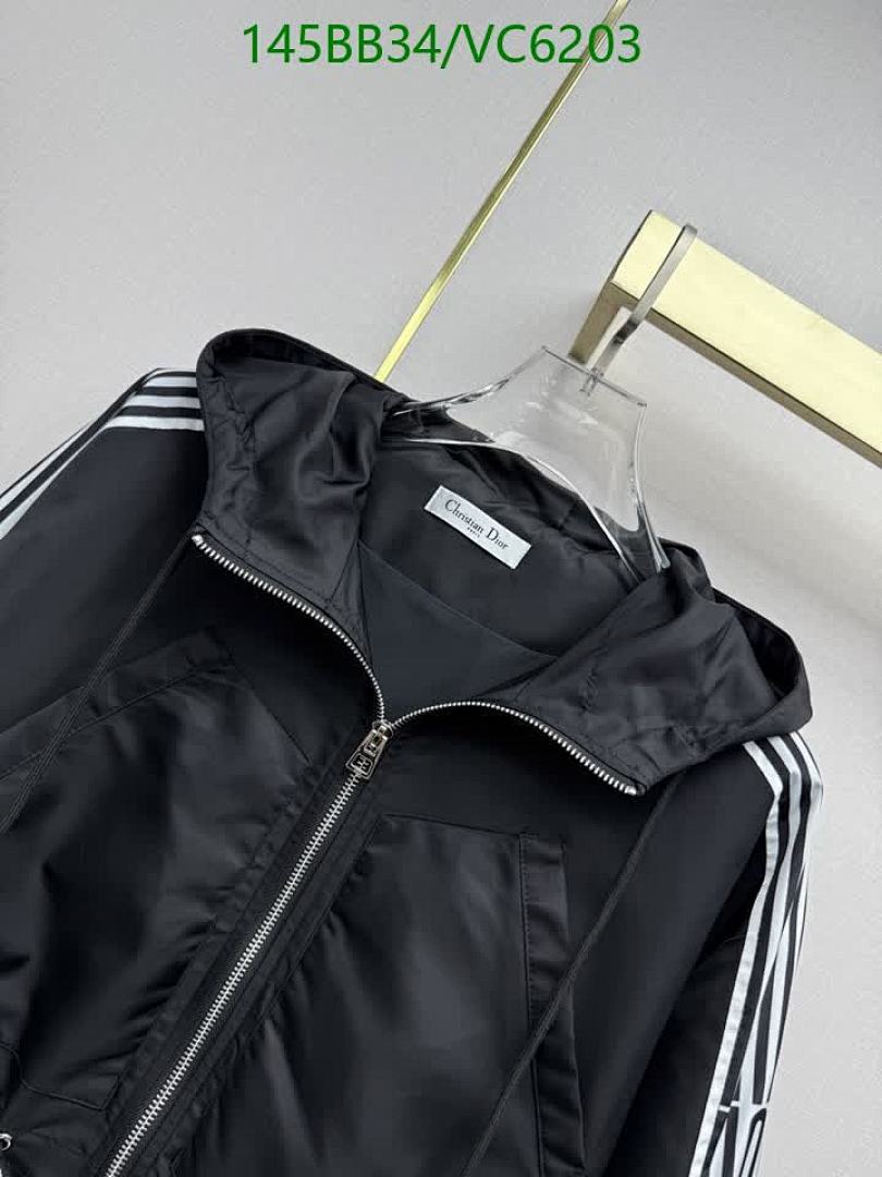 - Elegant Design: Features a chic black color with prominent white stripe detailing on the hood and sleeves, embodying Dior's signature aesthetic.