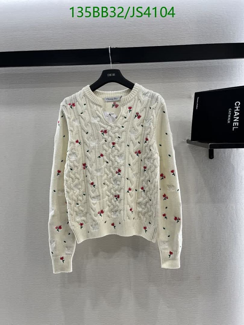 Elevate your style with this Dior cashmere knit sweater. Features delicate floral embroidery and a comfortable fit. Perfect for a chic, sophisticated look.