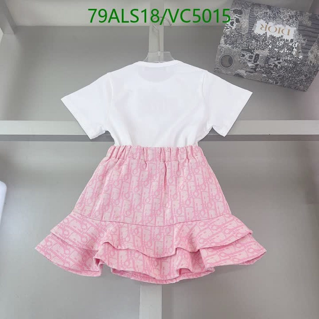 - Elegant Design: Features a clean white T-shirt with a prominent pink Dior logo, paired with a matching pink skirt adorned with a subtle pattern and stylish ruffles.