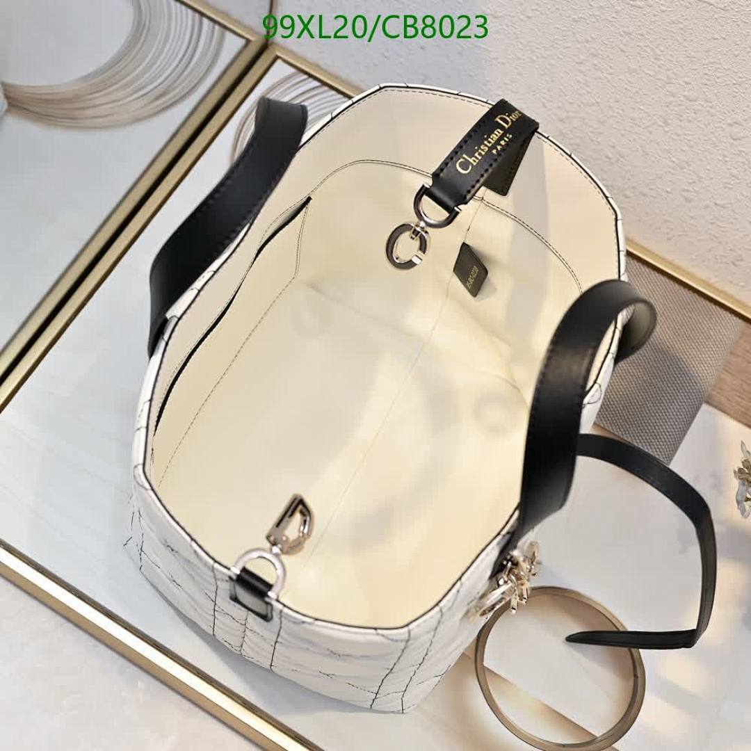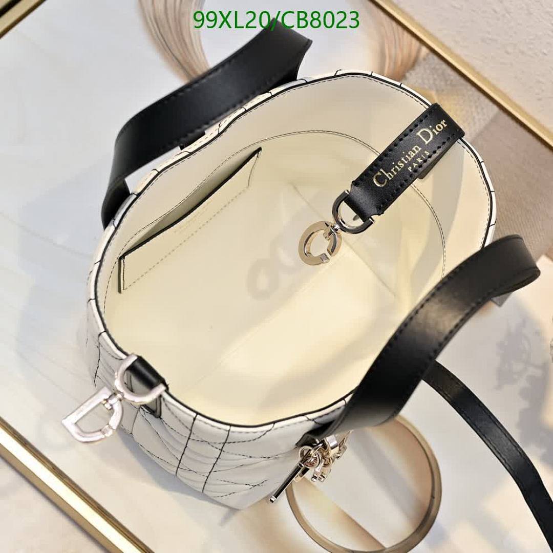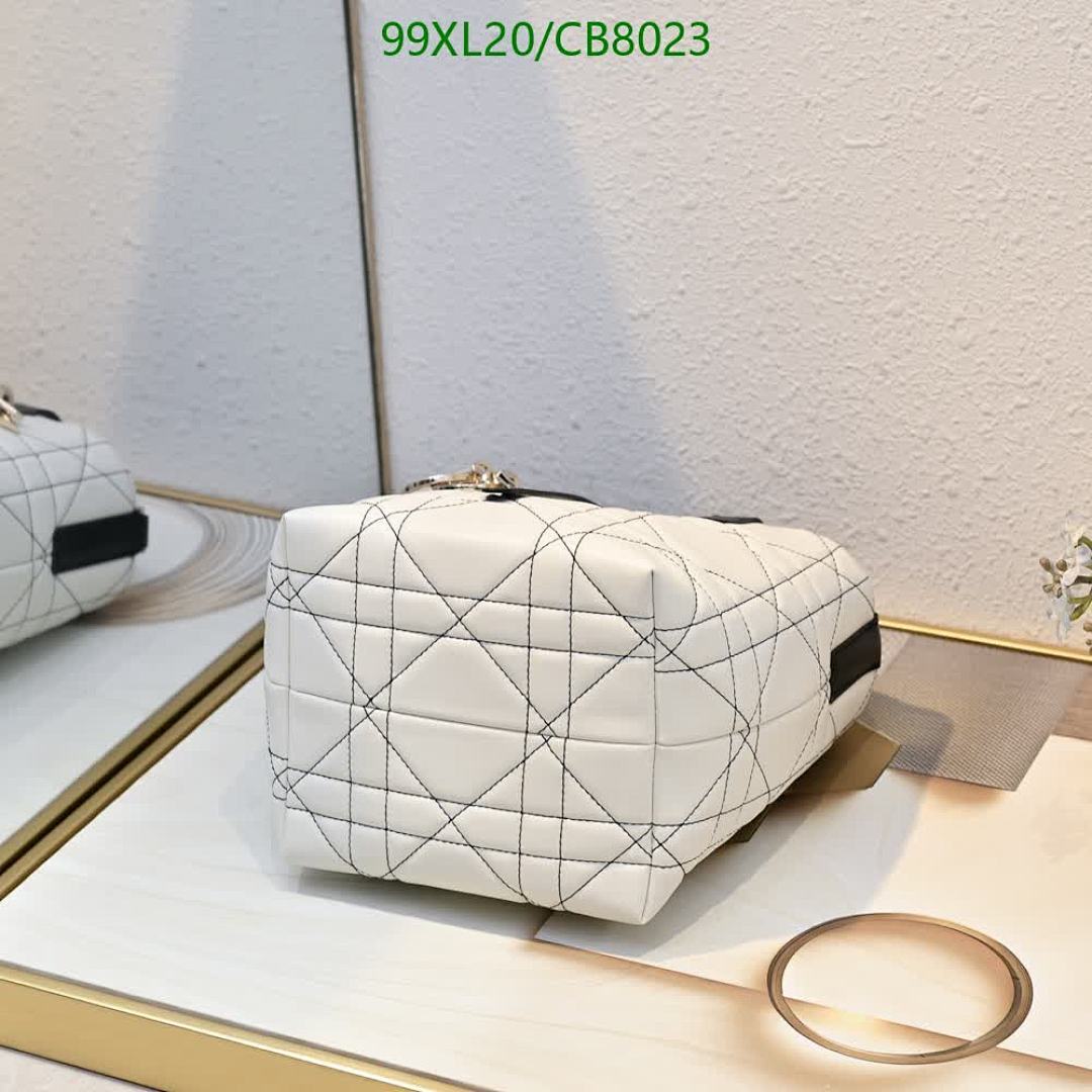 Elevate your style with this Lady Dior bag, crafted from genuine white leather with a quilted pattern and sleek top handles.