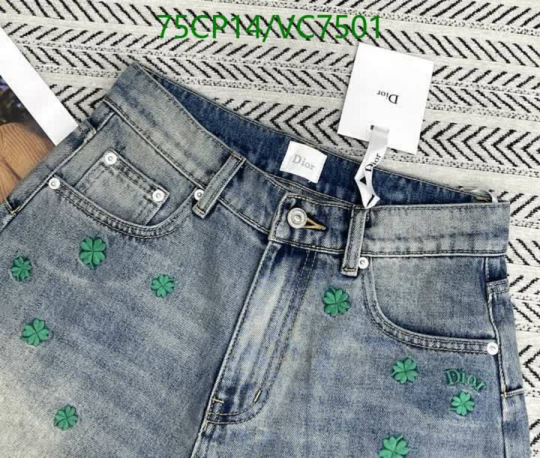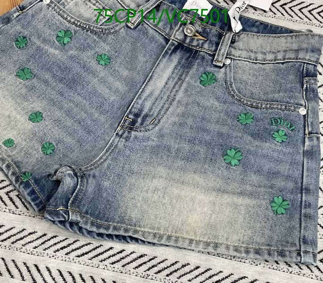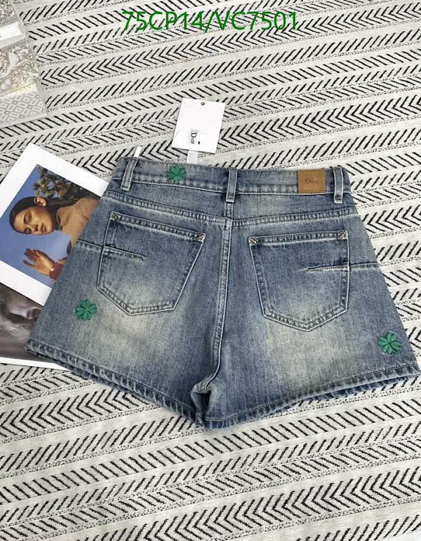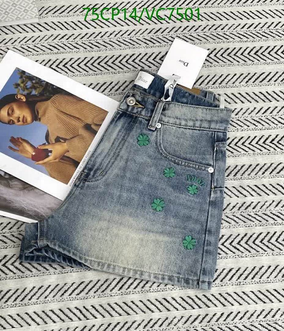 Discover these stylish Dior denim shorts, featuring a light wash and charming green embroidered clovers. Crafted from high-quality denim, they offer a comfortable fit and a fashionable look for any casual occasion. Available in sizes S-L.