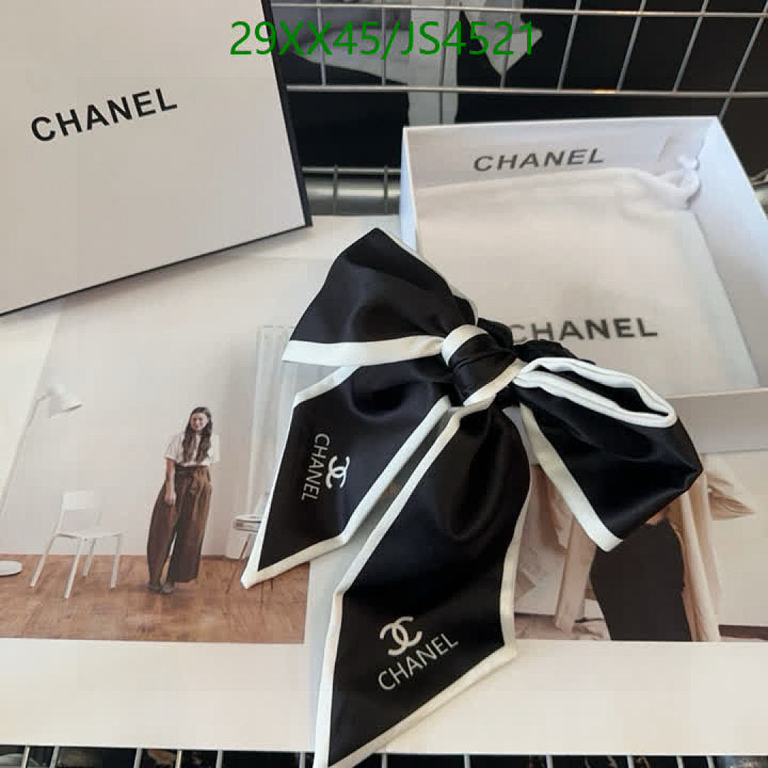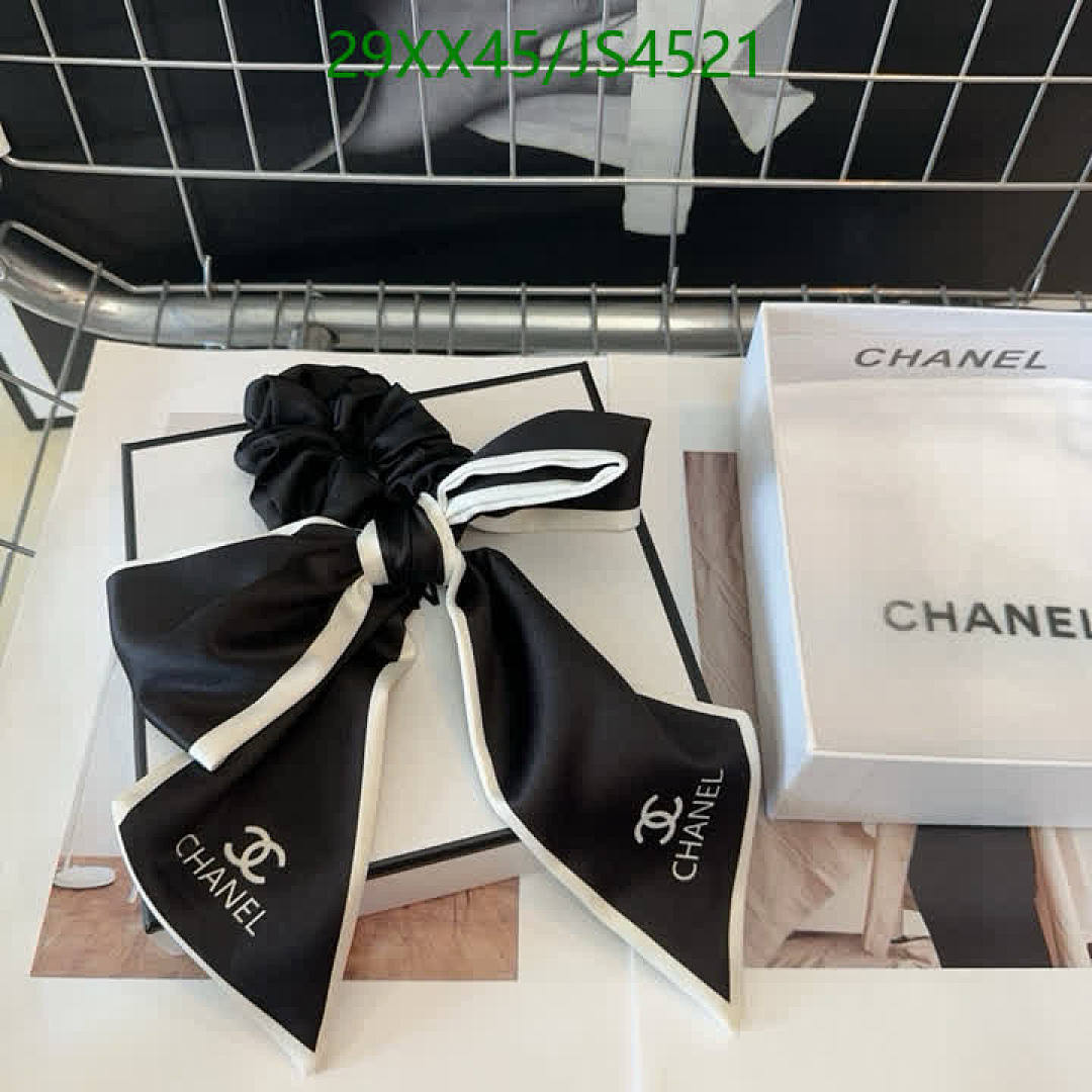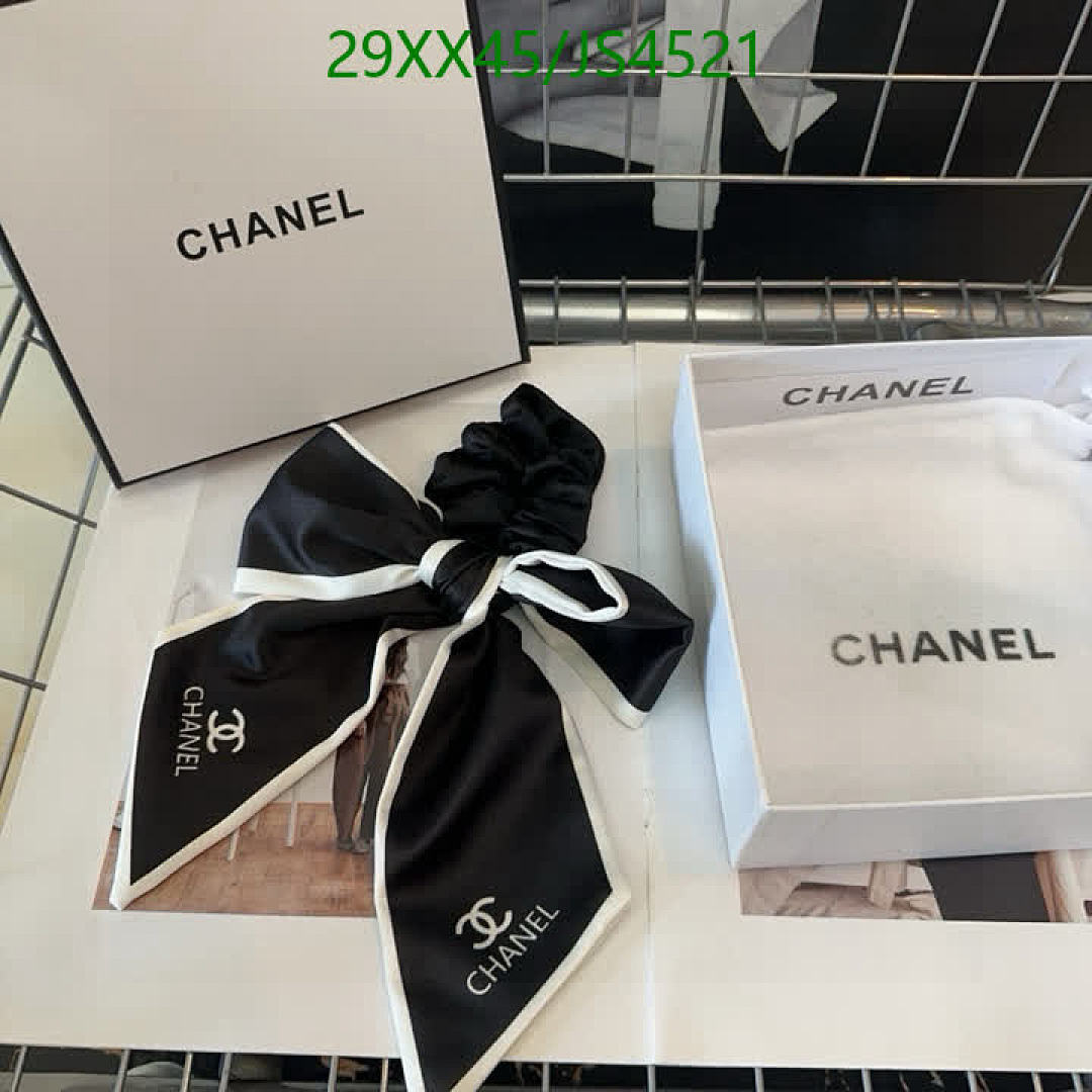Elevate your hairstyle with this chic Chanel hair tie. Features a stylish bow and iconic logo, perfect for adding a touch of luxury to any look.