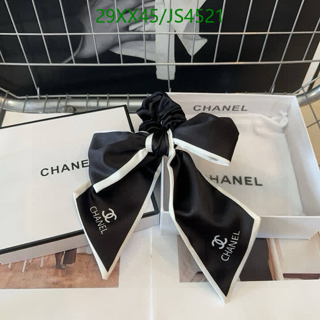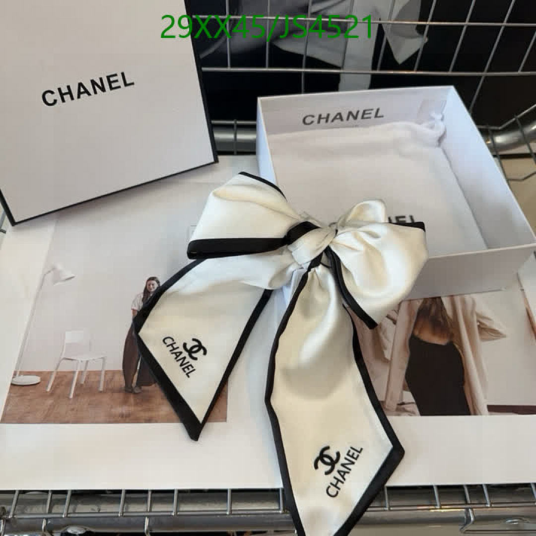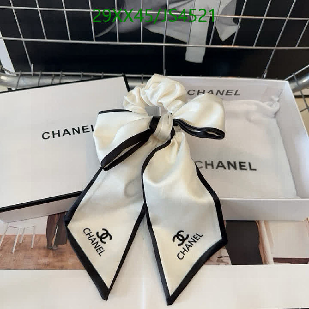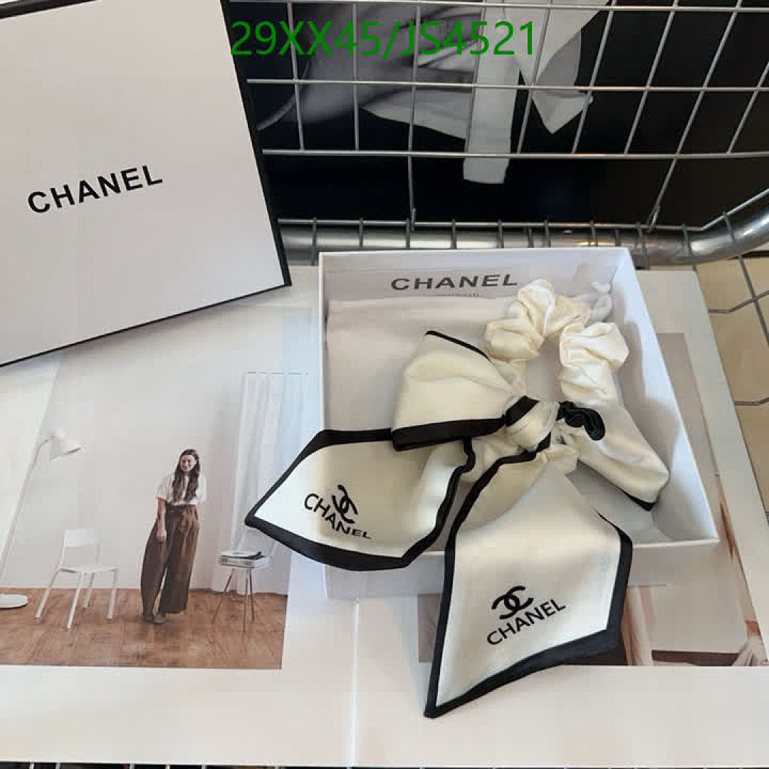 Elevate your hairstyle with this chic Chanel hair tie. Features a stylish bow and iconic logo, perfect for adding a touch of luxury to any look.
