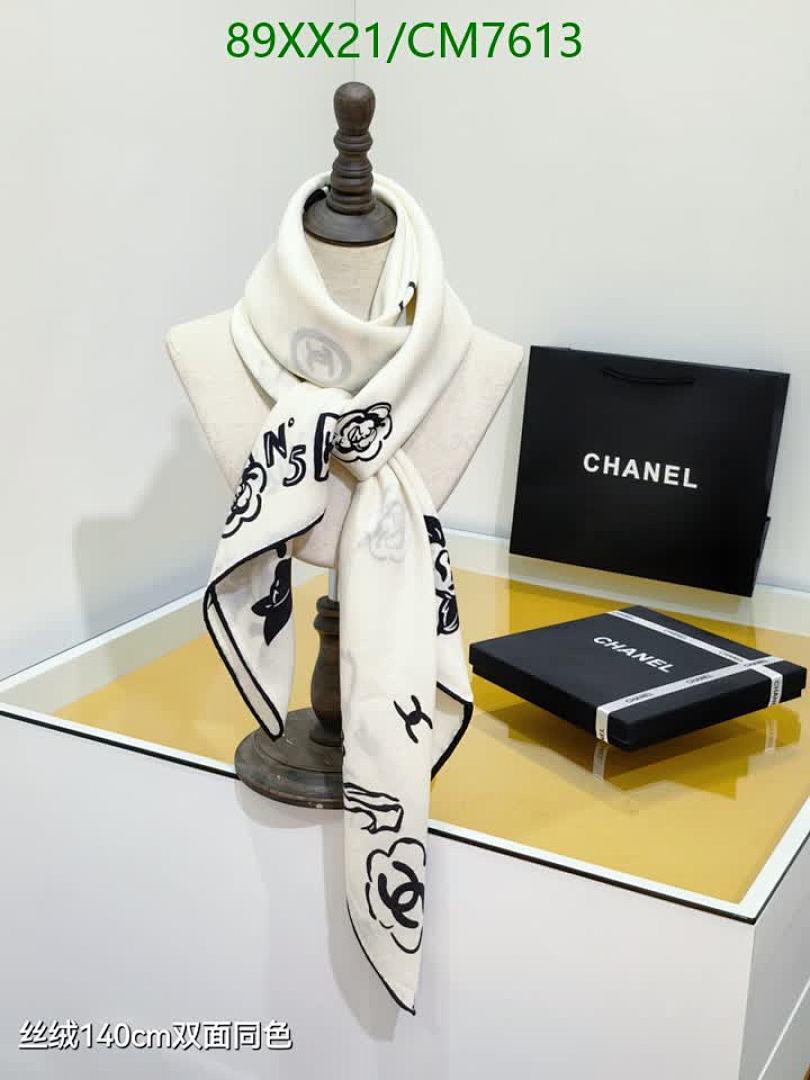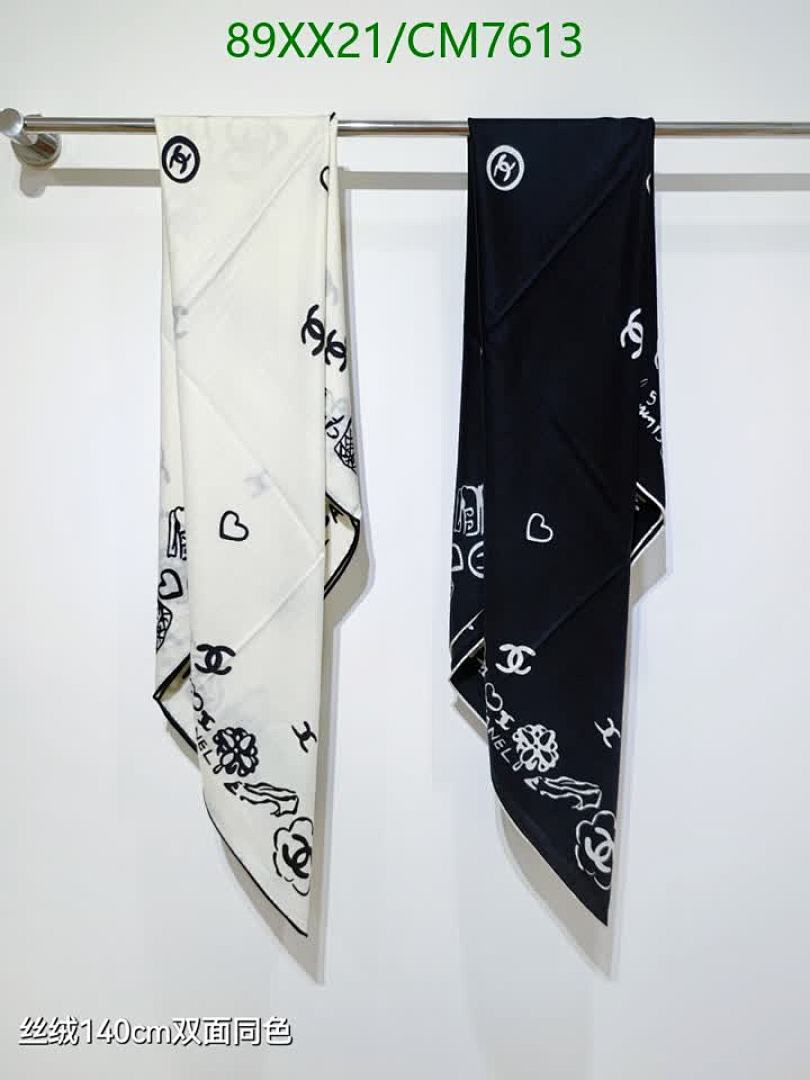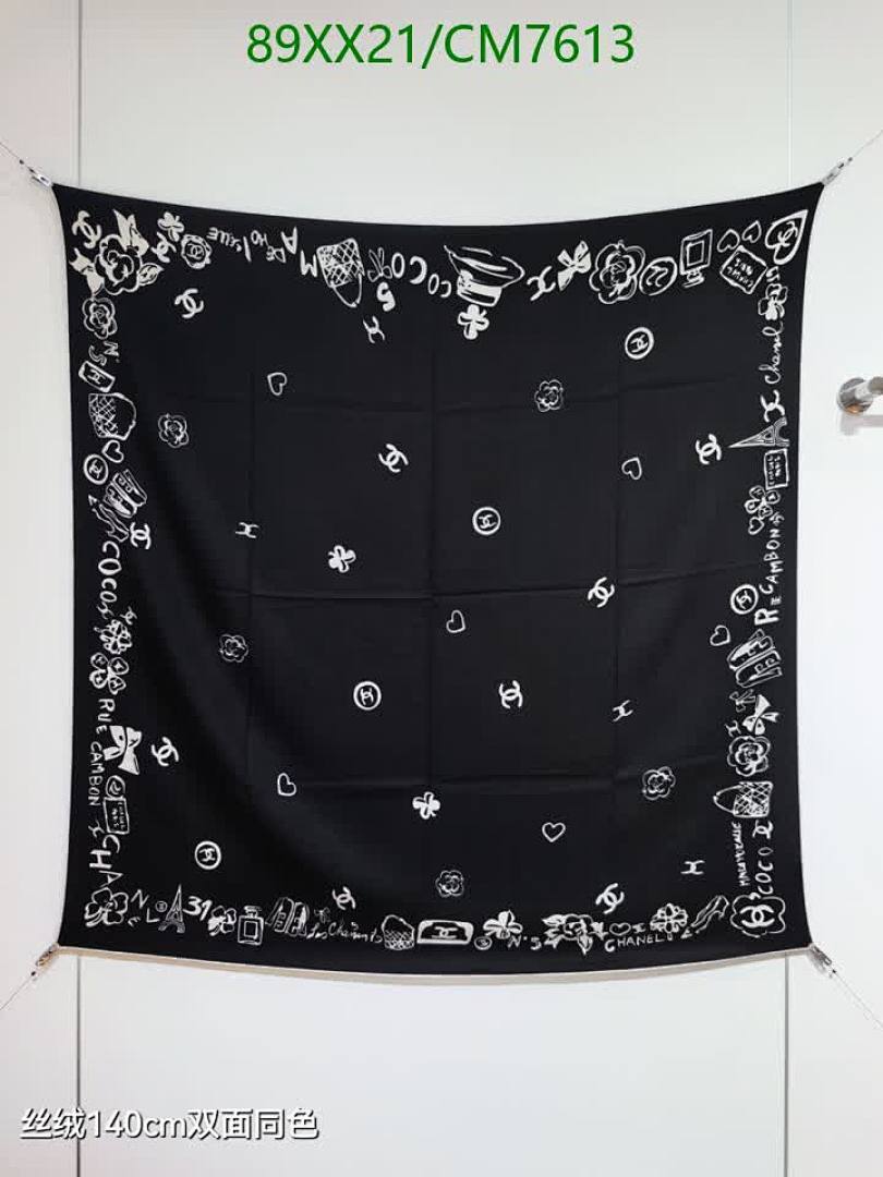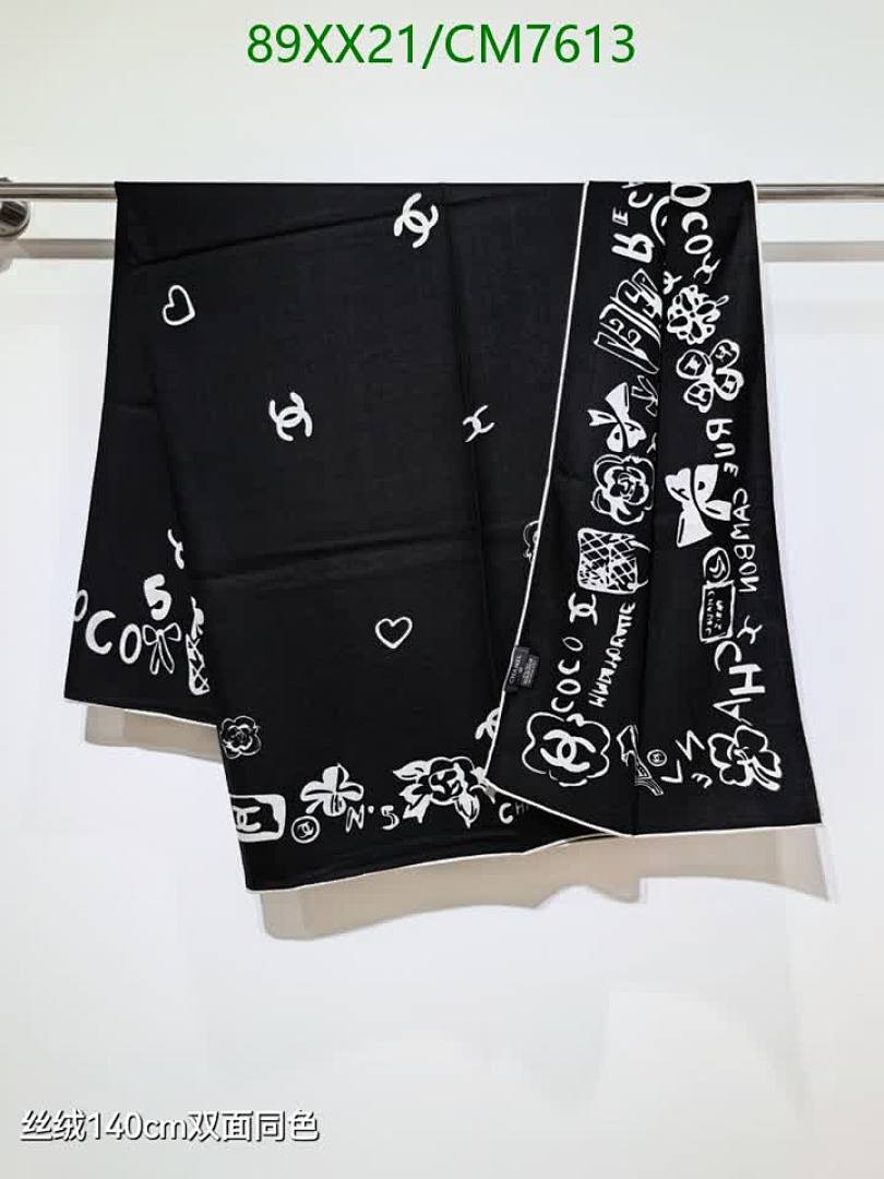 Elevate your wardrobe with this timeless Chanel scarf, a symbol of luxury and sophistication.
