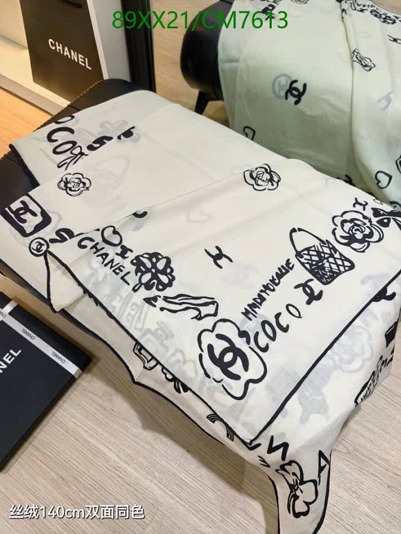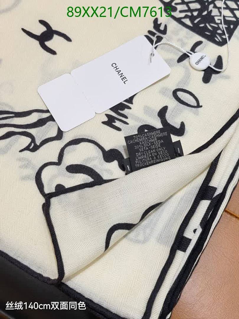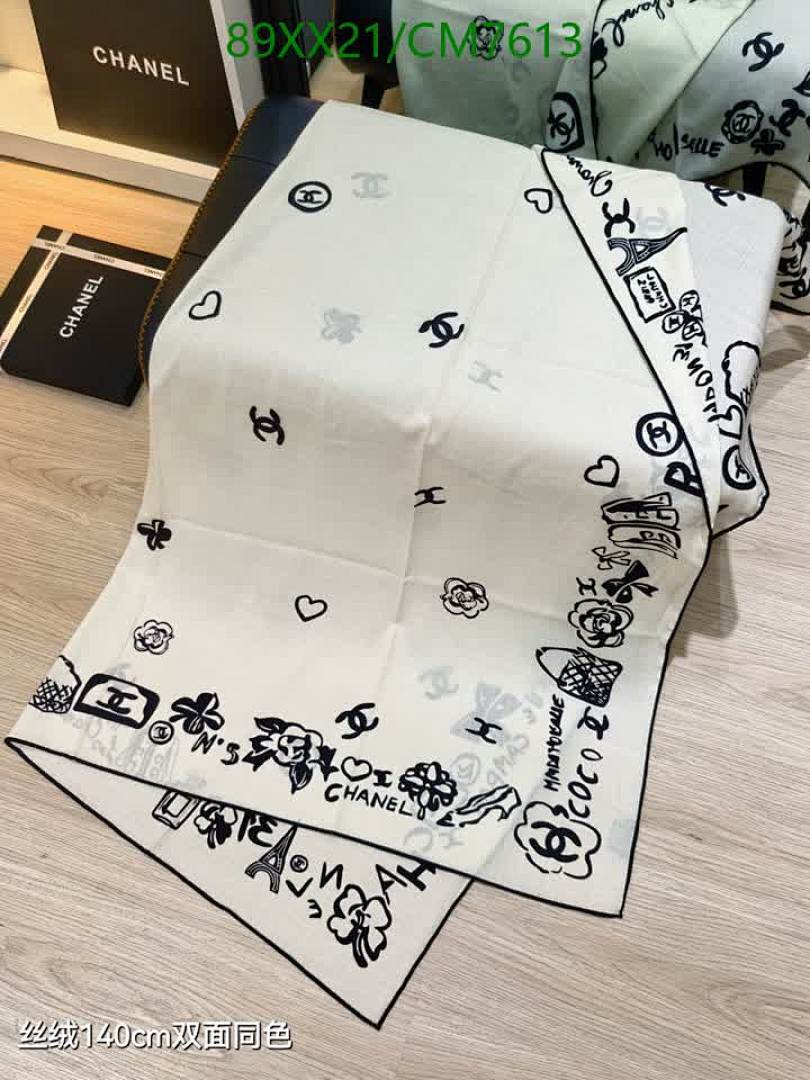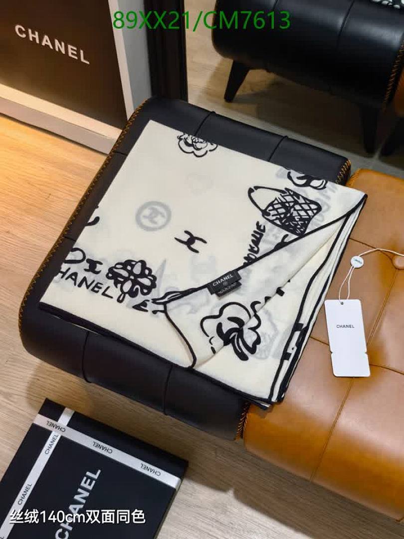 Elevate your wardrobe with this timeless Chanel scarf, a symbol of luxury and sophistication.