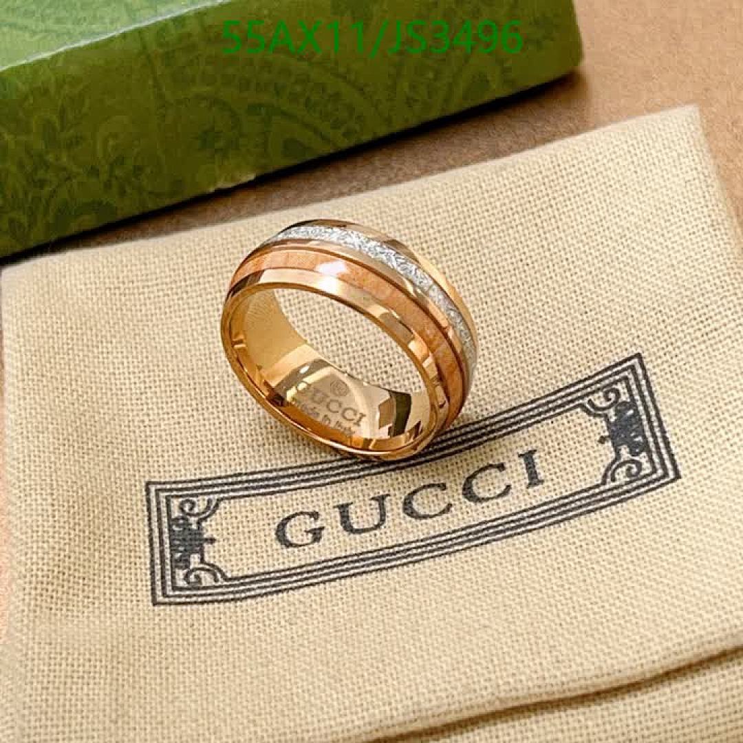 Gucci Gold-Tone Ring with Wood Inlay, Sizes 6 to 11, Stylish Band Ring