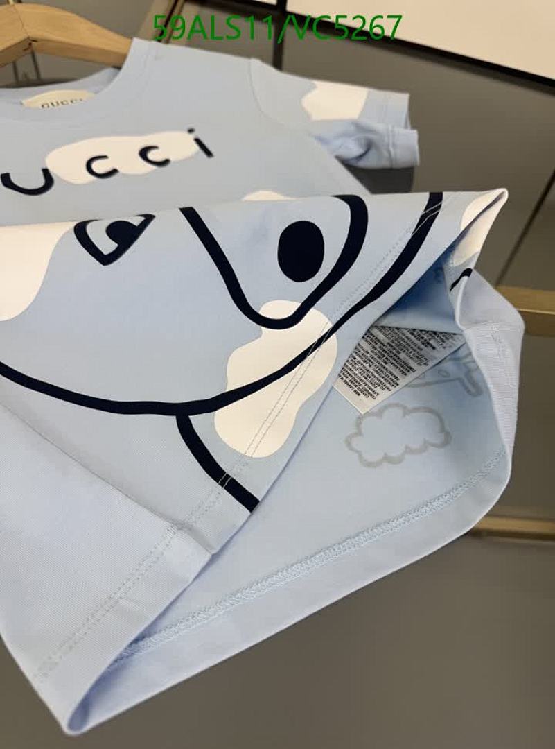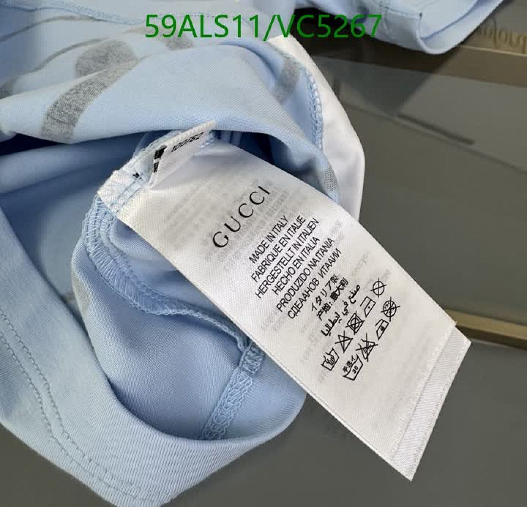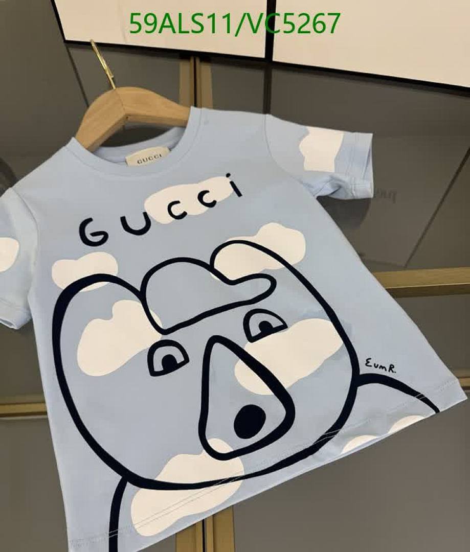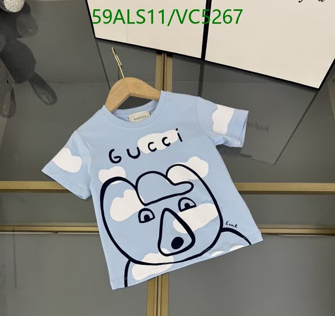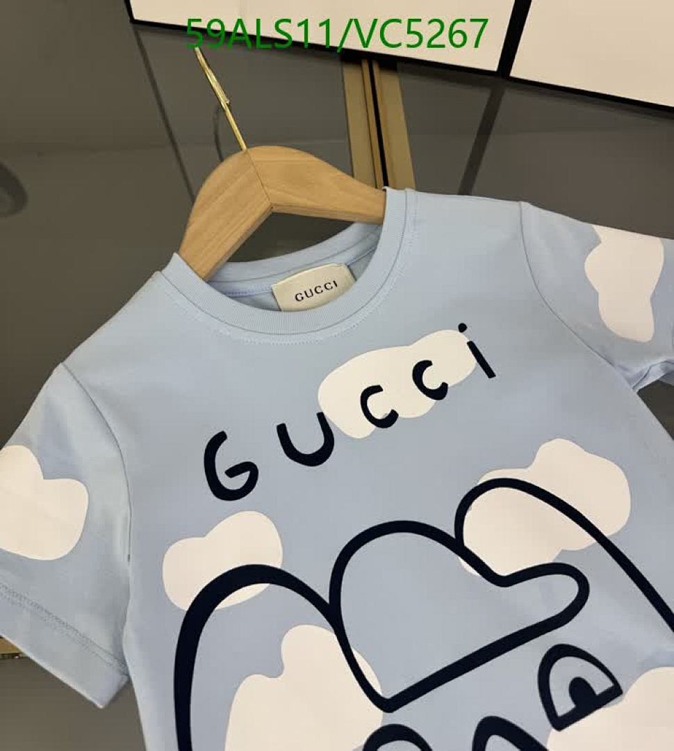 - T-Shirt: Soft cotton fabric in a light blue hue, adorned with an endearing bear graphic surrounded by fluffy clouds. Features the iconic Gucci logo.
