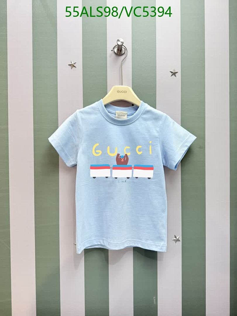 This delightful Gucci Kids' t-shirt is a must-have for your child's wardrobe, combining luxury design with playful charm. Crafted from soft, breathable cotton, it ensures maximum comfort for all-day wear, whether they're at school, playing outdoors, or enjoying a family outing. The vibrant light blue hue serves as a perfect backdrop for the engaging graphic featuring a friendly bear driving a colorful train, complete with the prominent Gucci logo.