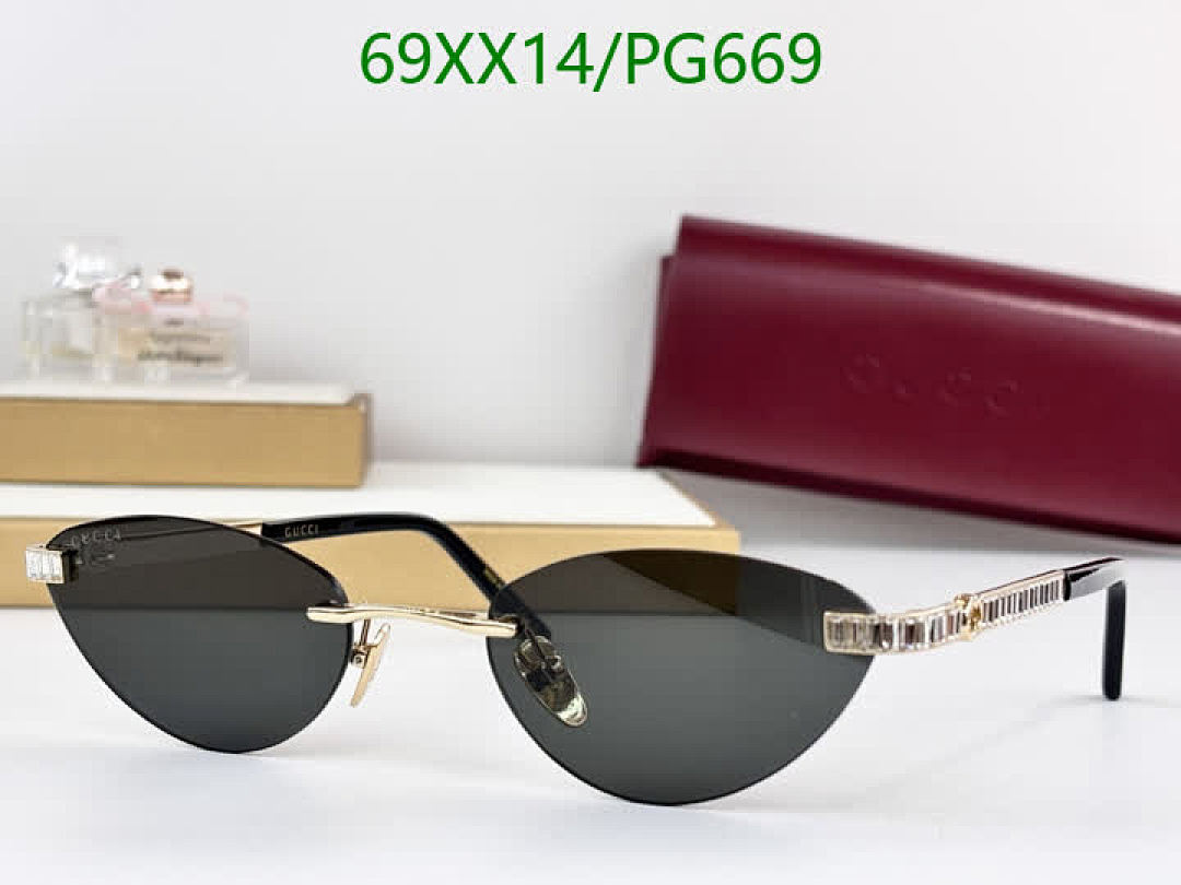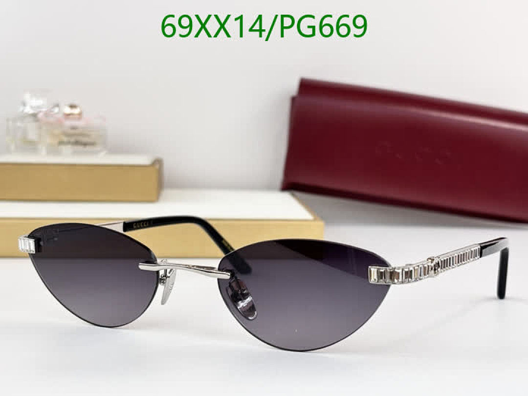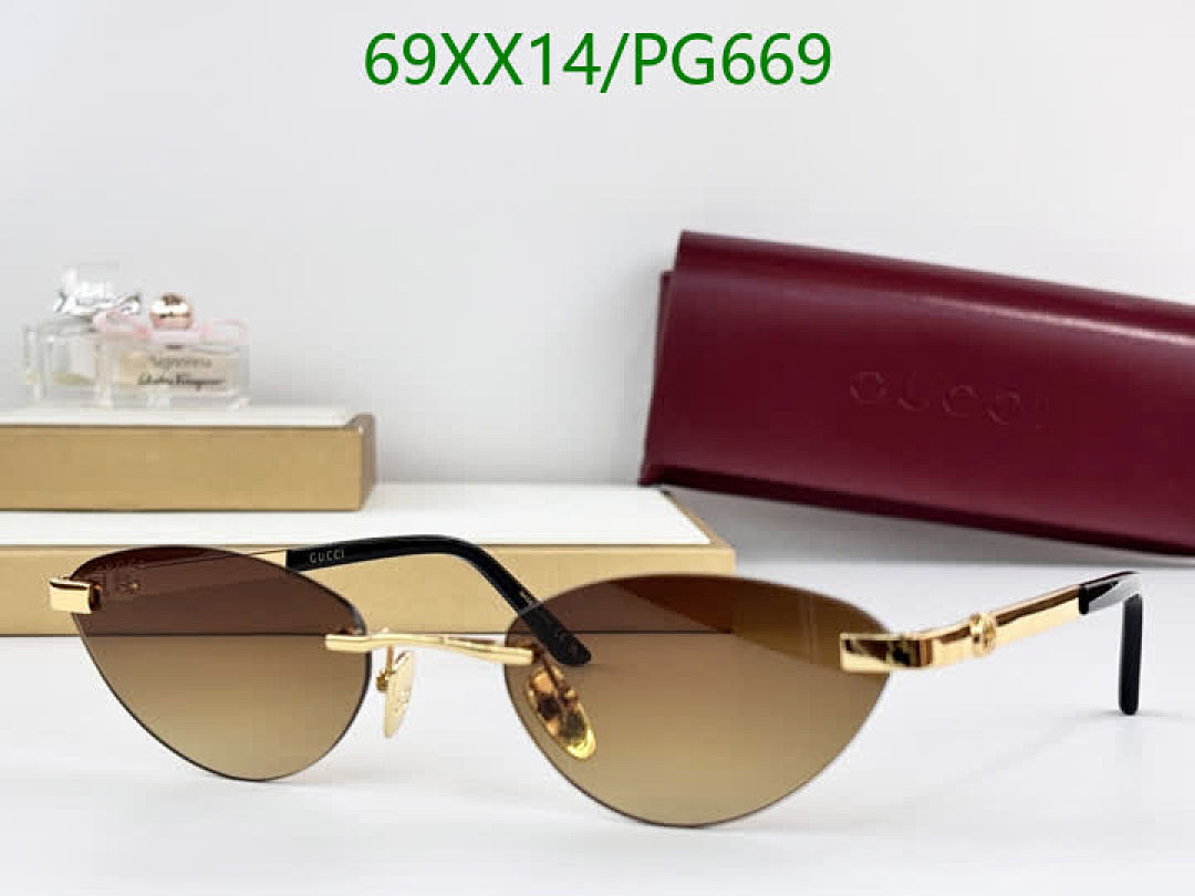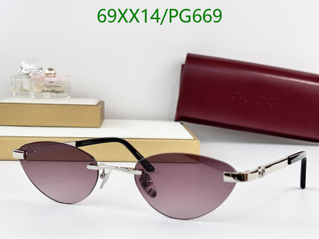 These Gucci PG669 sunglasses offer a blend of modern design and classic elegance. The rimless style and unique lens color make them a standout accessory.
