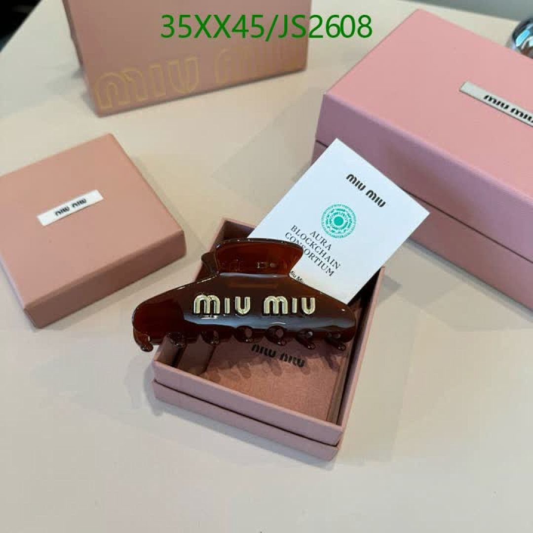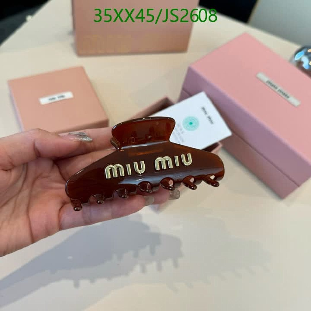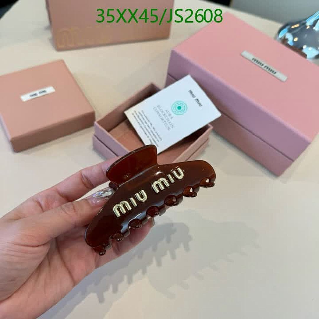 Elevate your hairstyle with this stylish Miu Miu hair claw clip. Features the iconic logo, perfect for adding a touch of luxury to any look. Code: JS2608