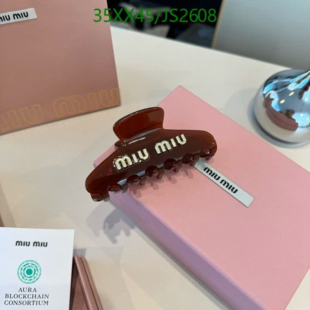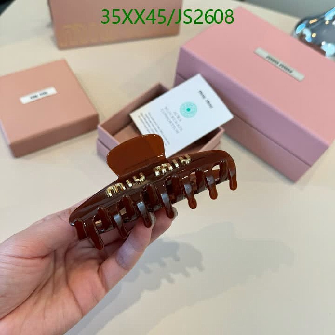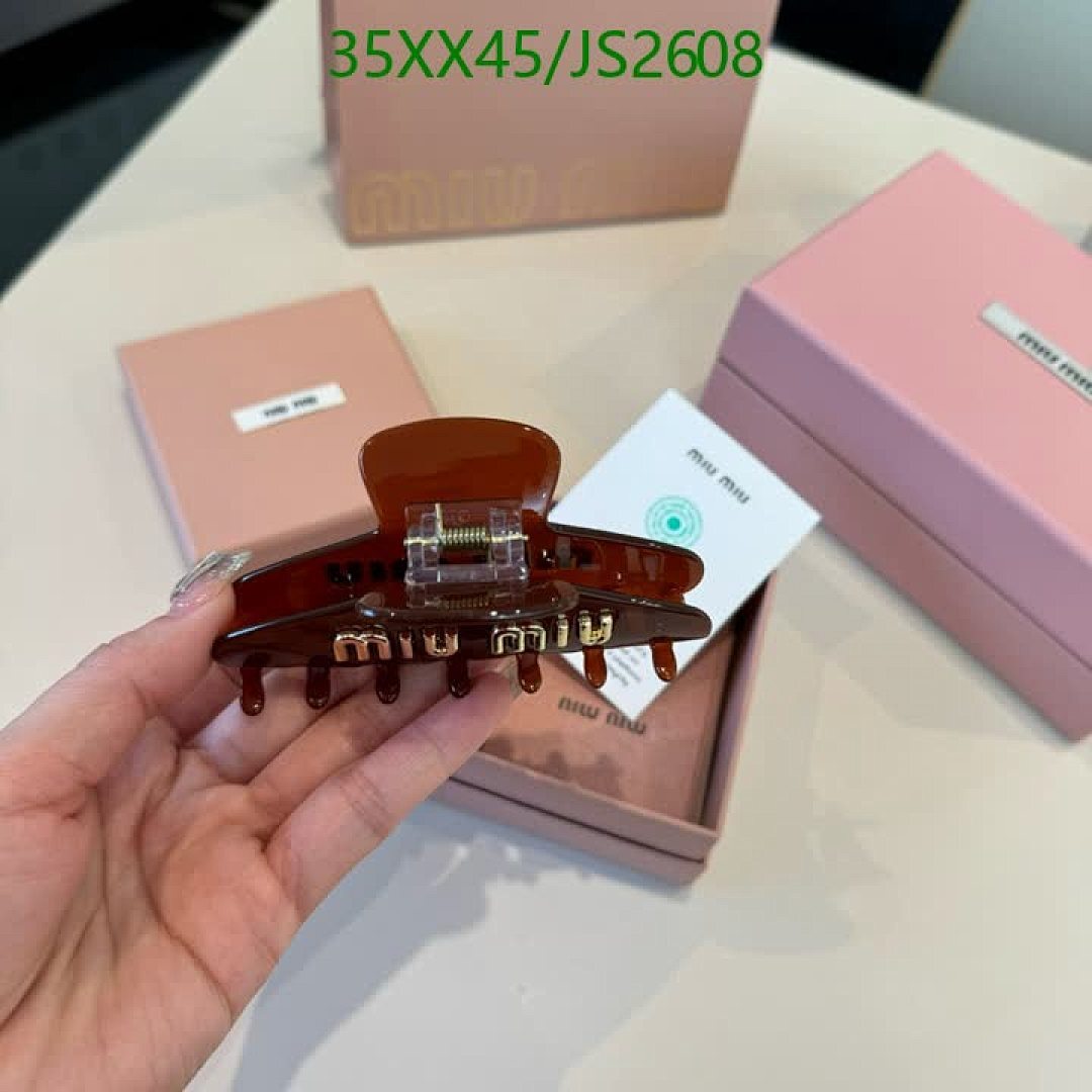 Elevate your hairstyle with this stylish Miu Miu hair claw clip. Features the iconic logo, perfect for adding a touch of luxury to any look. Code: JS2608