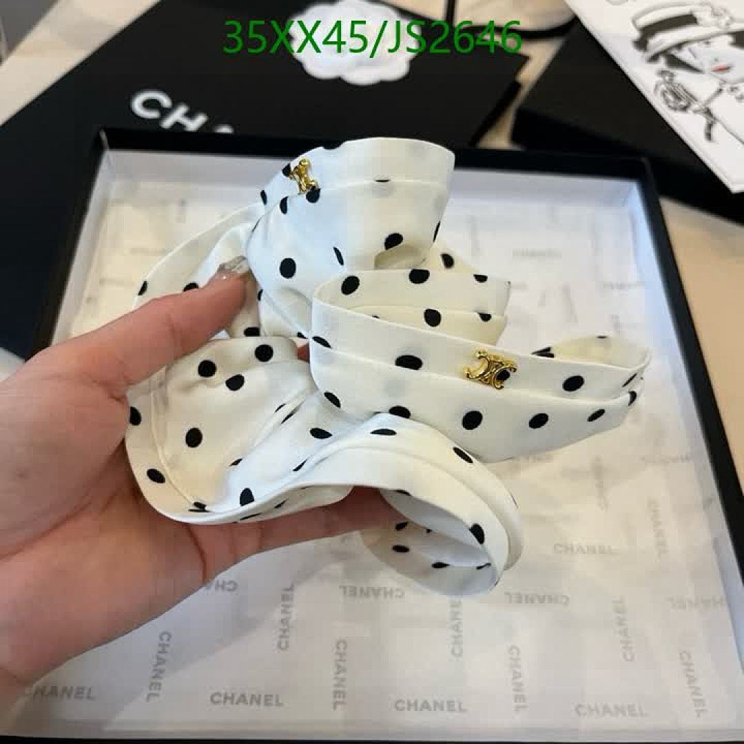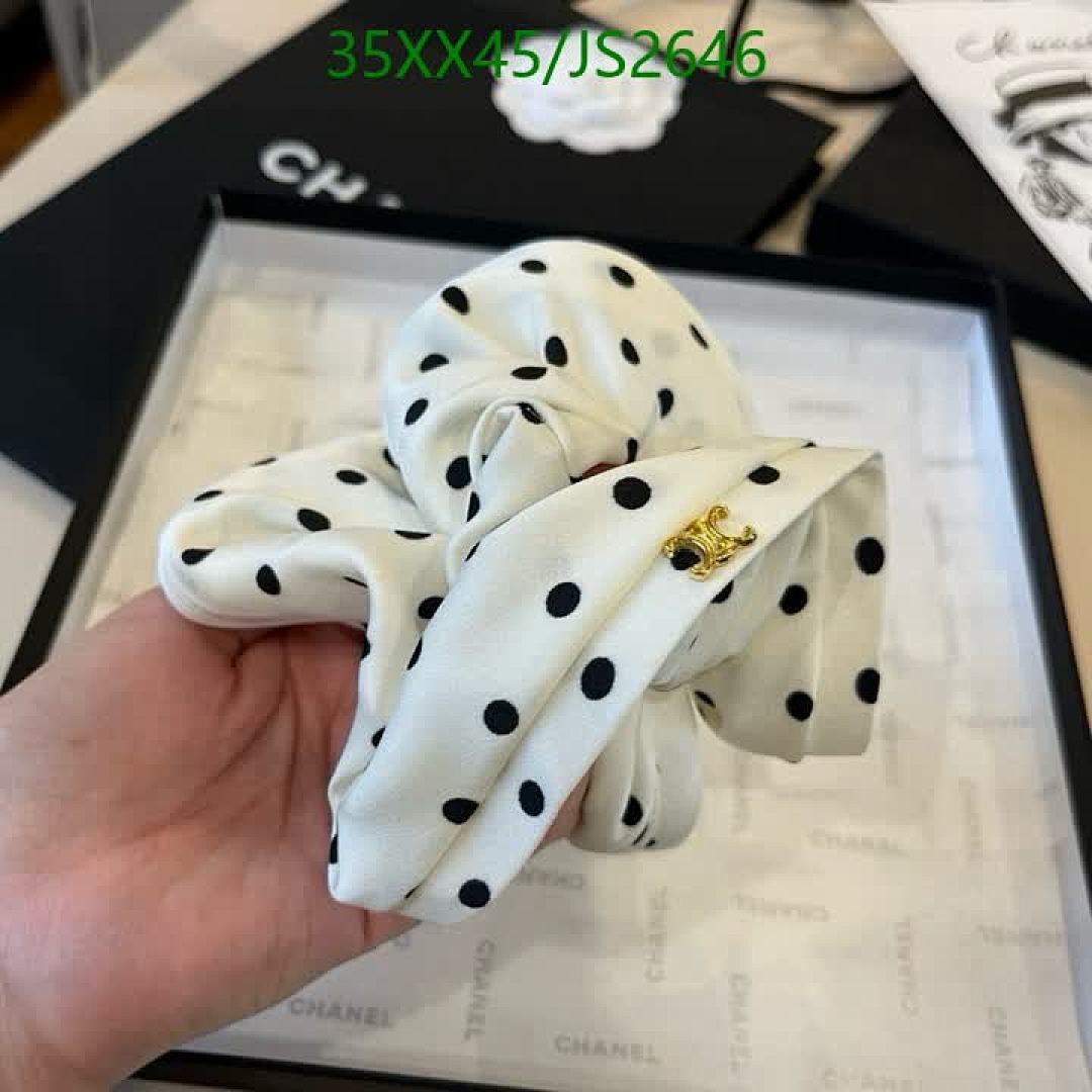 Elevate your hairstyle with this chic Chanel scrunchie. Features a playful polka dot design crafted from luxurious silk. Perfect for adding a touch of elegance.