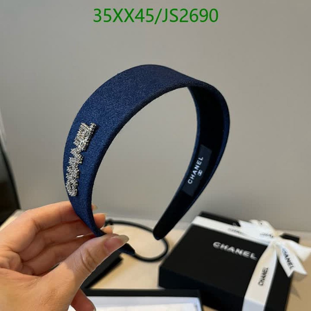 Elegant Chanel Headband - Denim Blue with Crystal Embellishments, JS2690