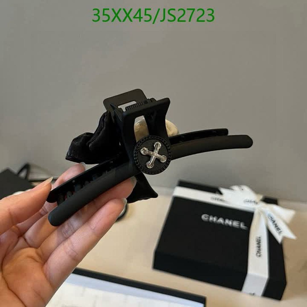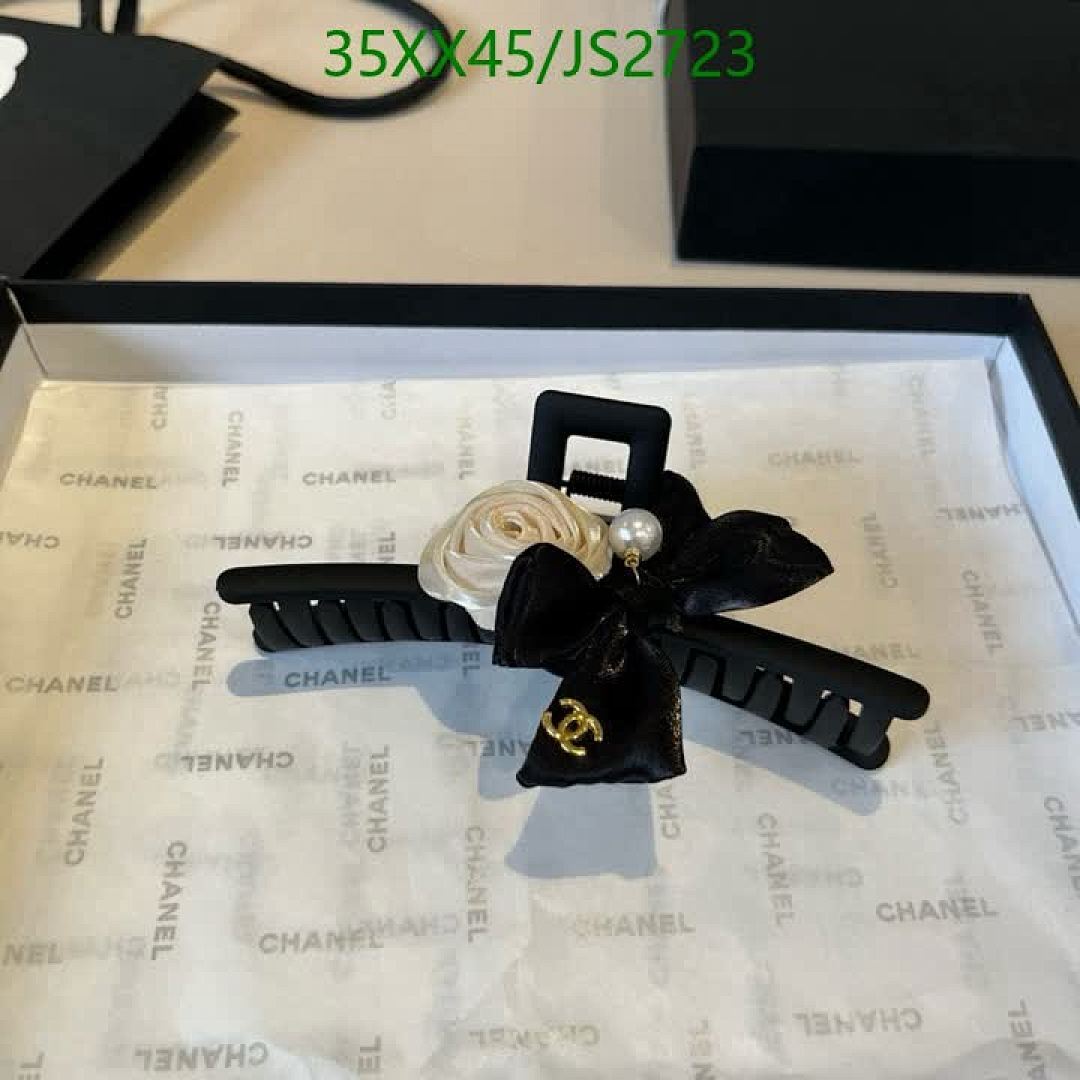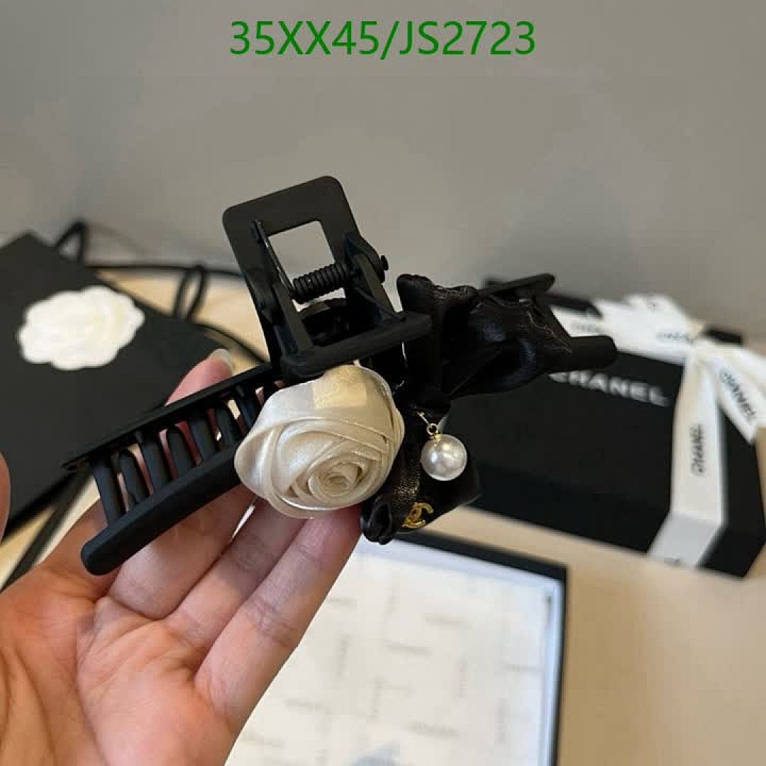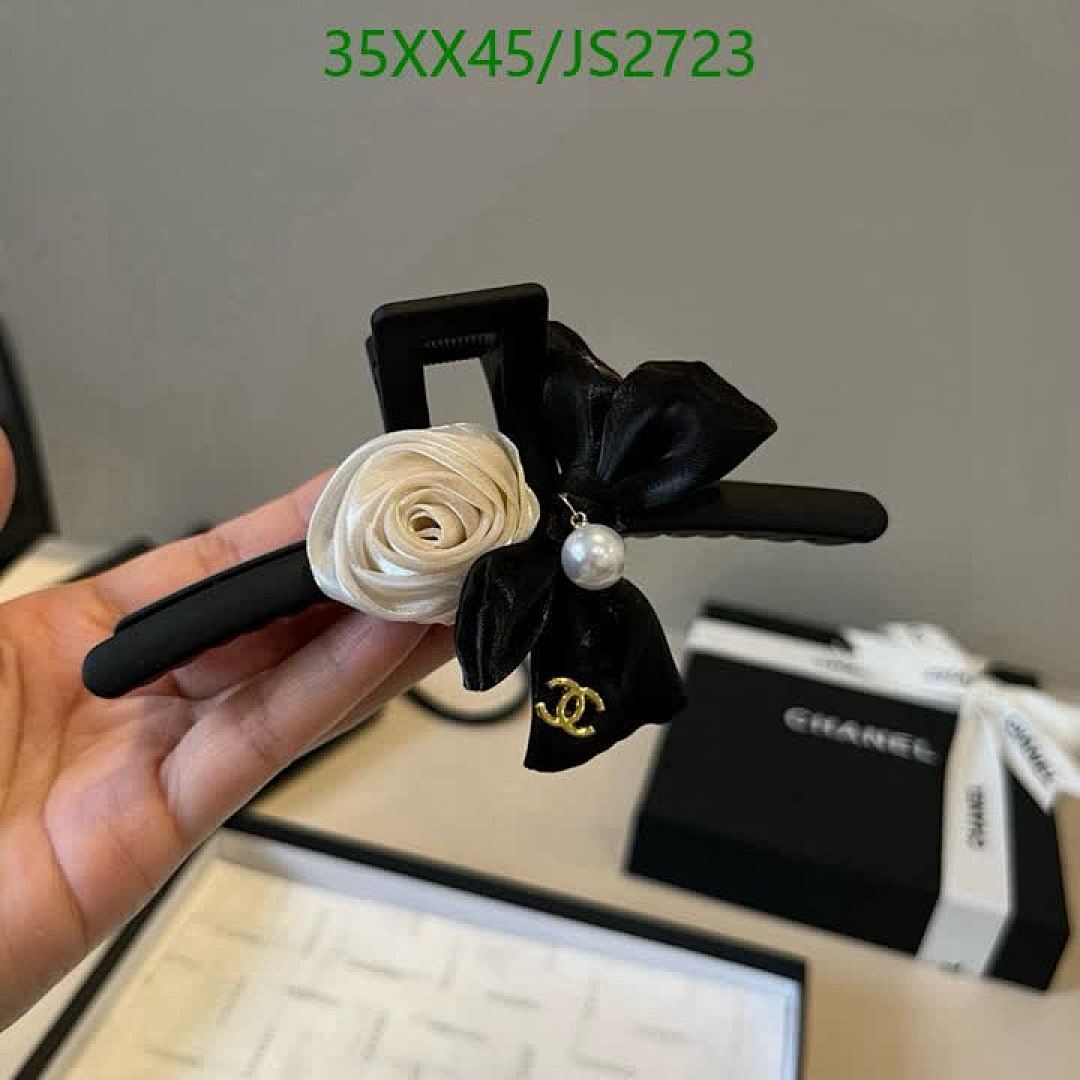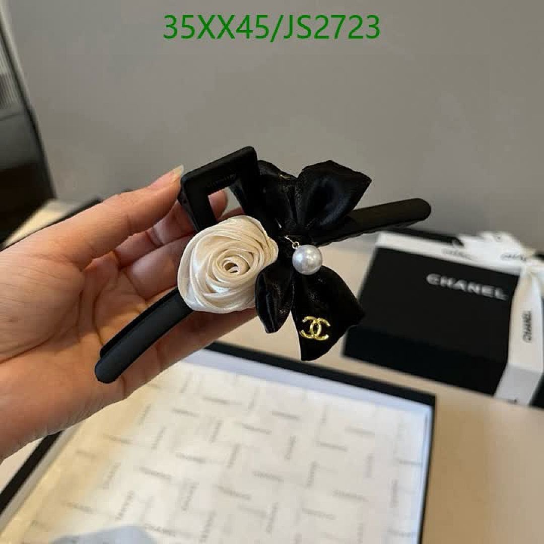Elevate your style with this exquisite Chanel headband. Features a delicate rose, elegant bow, and secure claw clip for a chic look. JS2723.