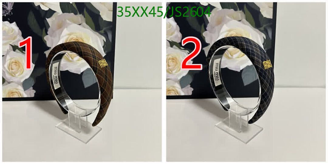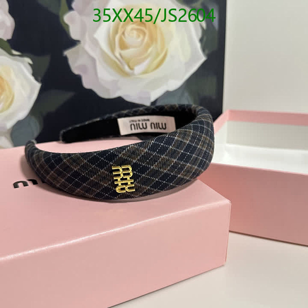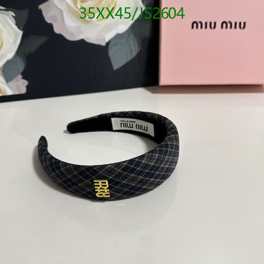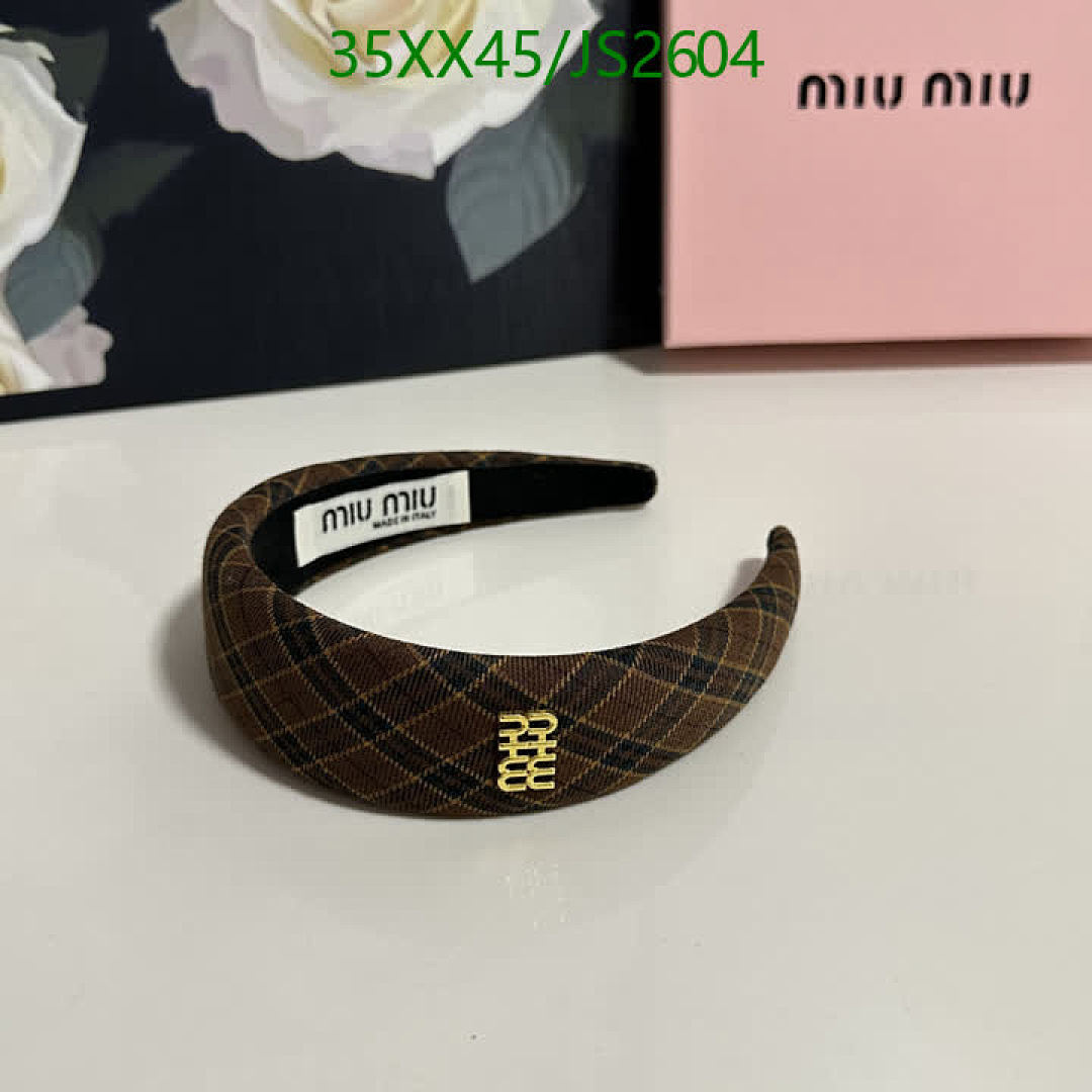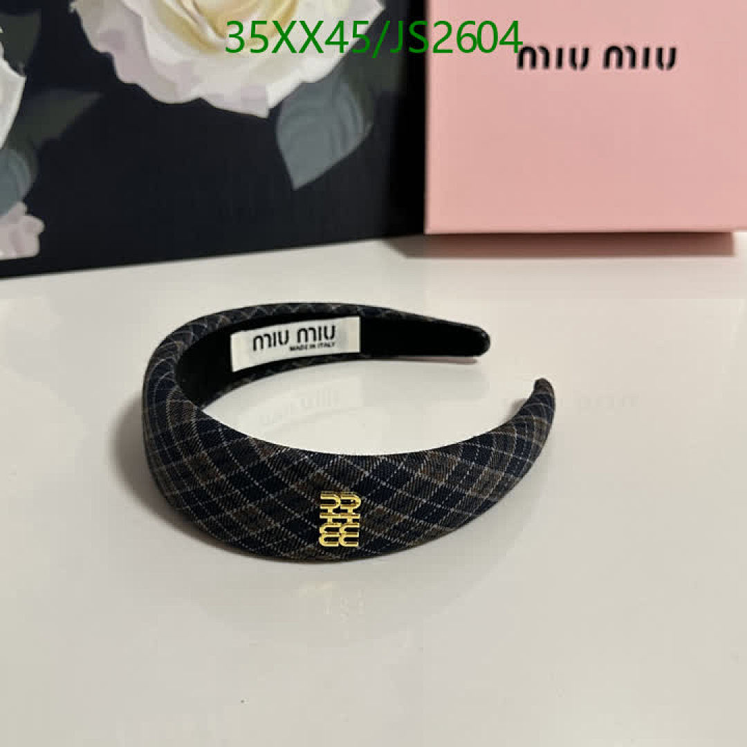 Miu Miu Plaid Headband with Logo, Stylish Hair Accessory for Women, JS2604