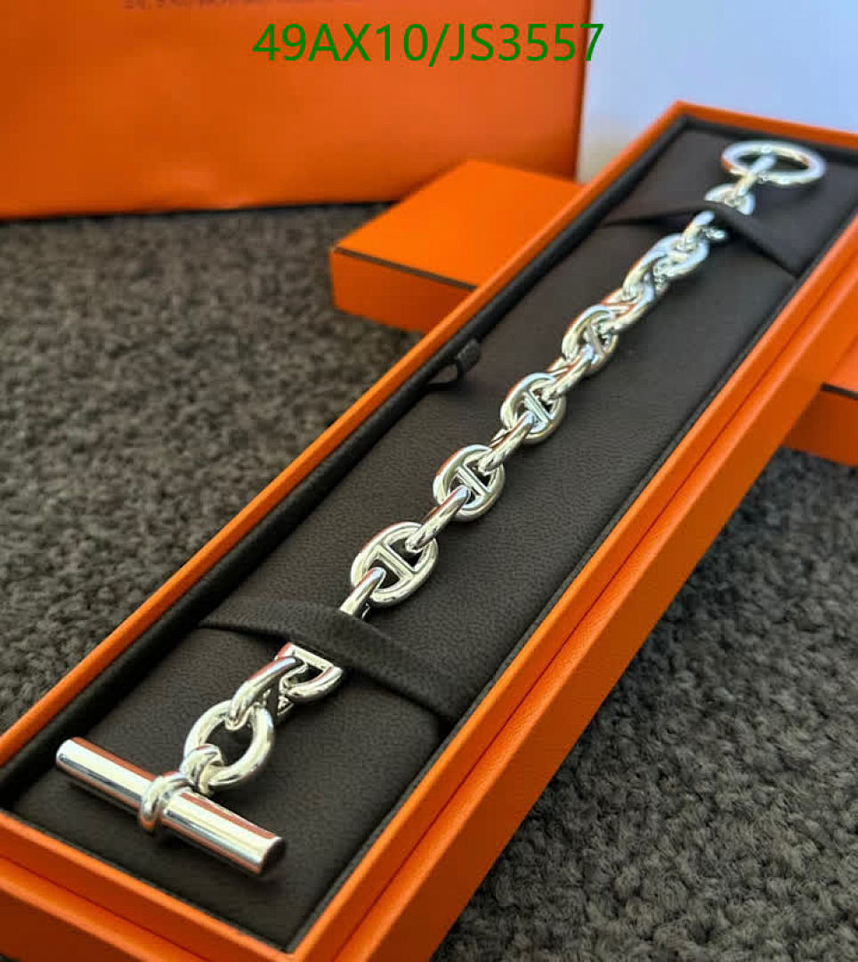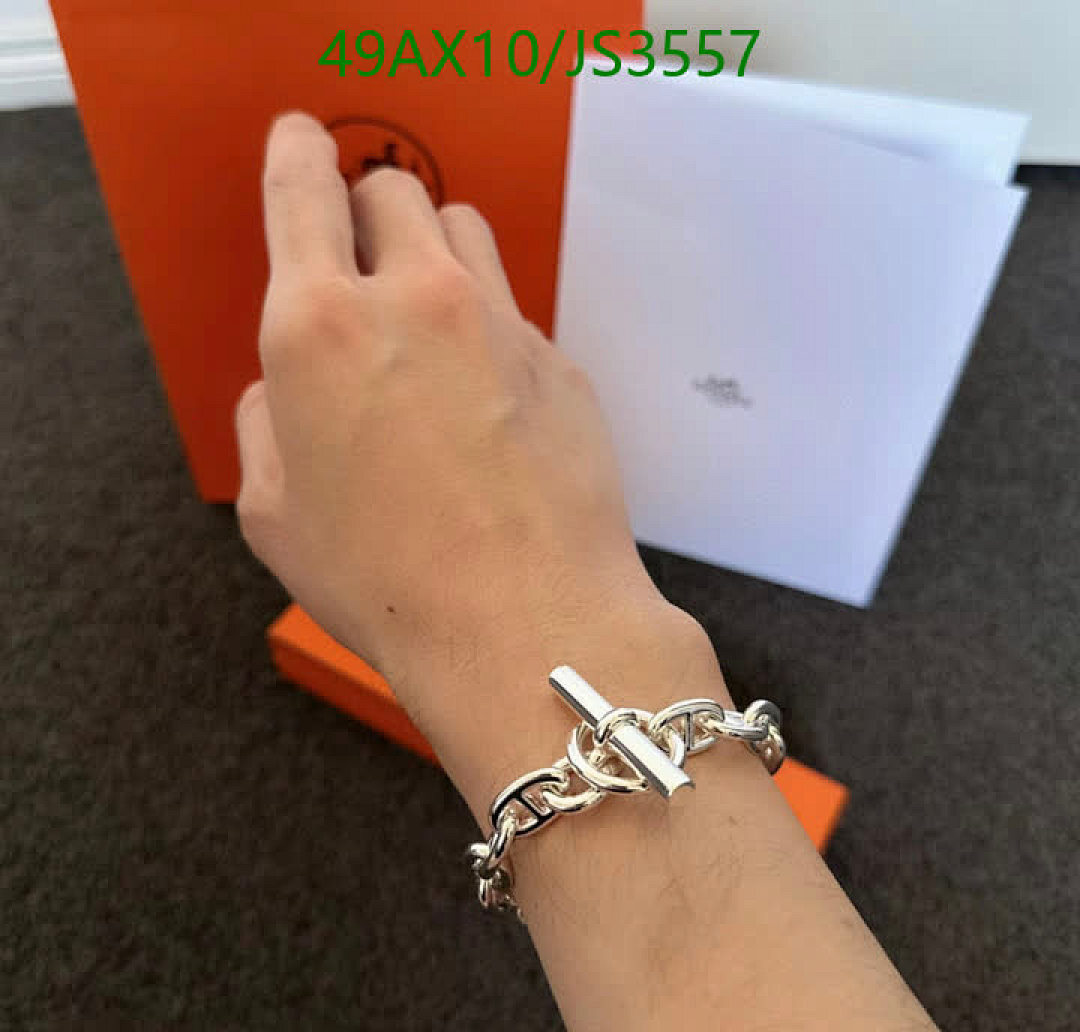 Elevate your style with this Hermes chain link bracelet. The silver finish and toggle clasp add a touch of luxury to any outfit. Available in multiple sizes.