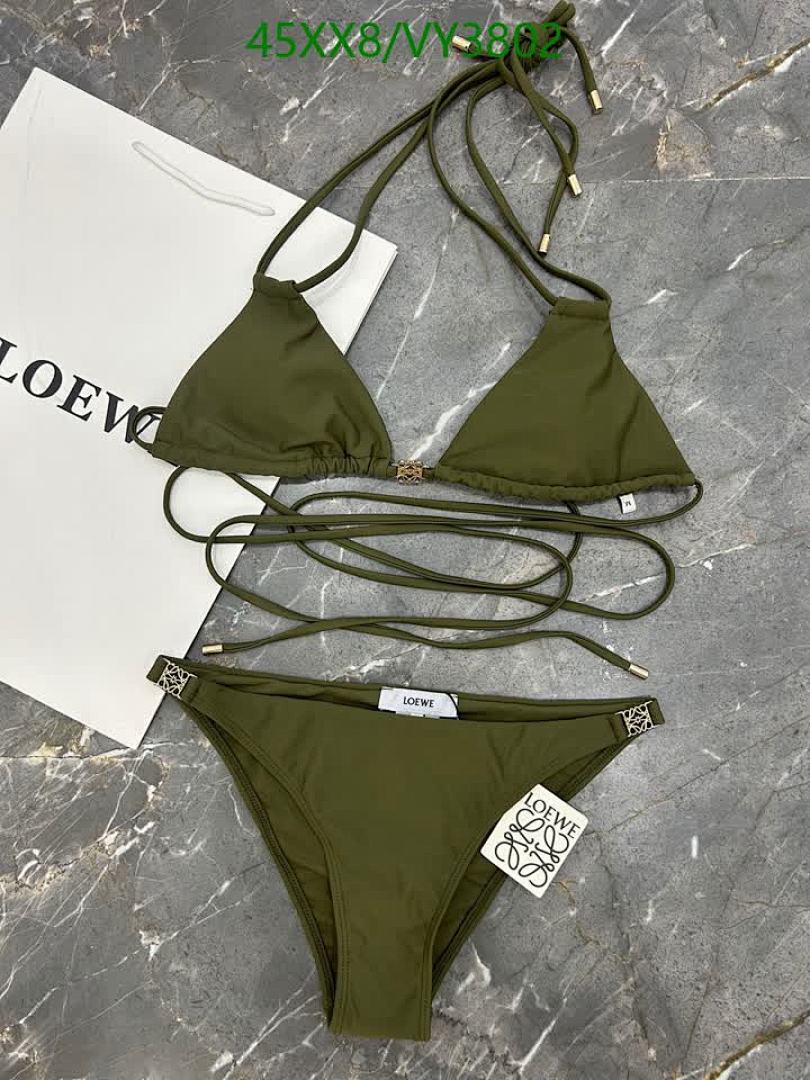 Dive into luxury with the Loewe Olive Green Triangle Bikini Set. This stylish swimwear features a classic triangle top and matching bottoms, perfect for beach days or poolside lounging. Crafted for comfort and elegance, it's a must-have for your summer wardrobe.