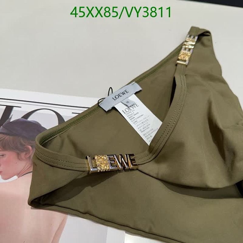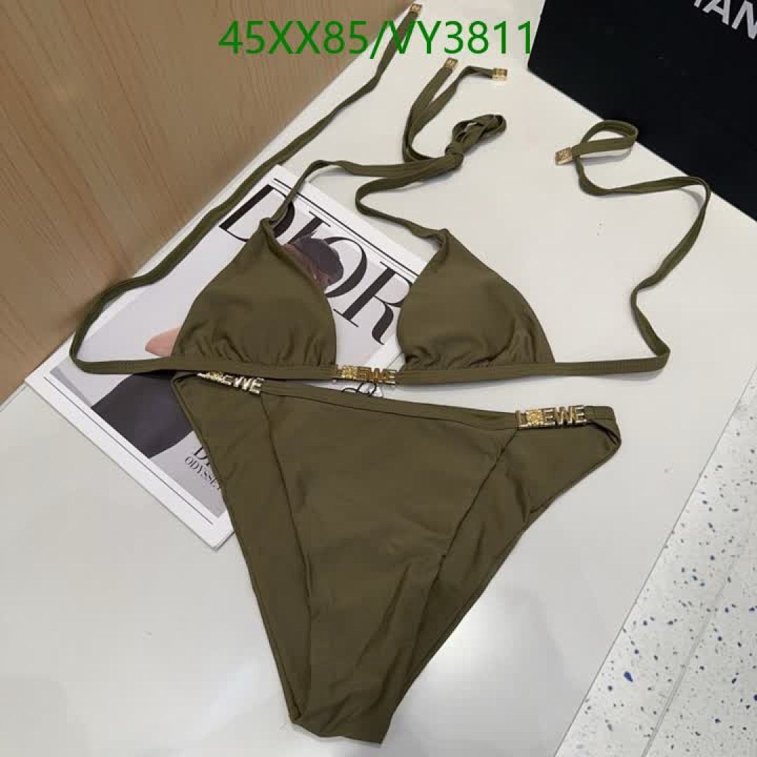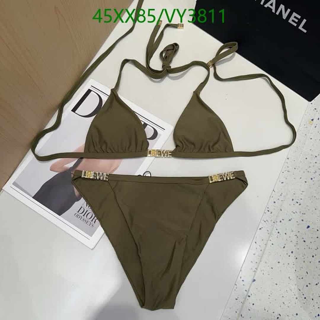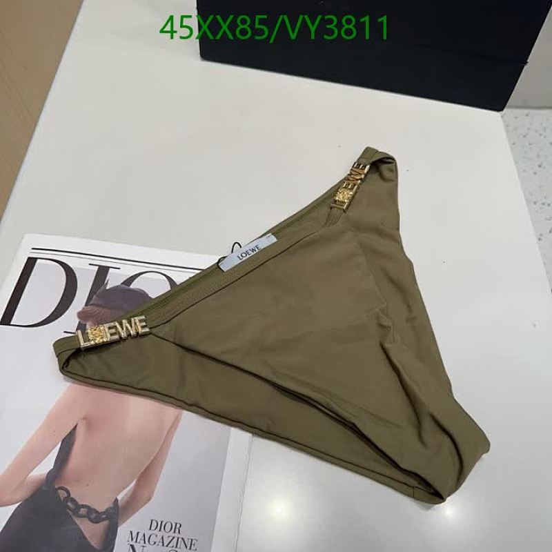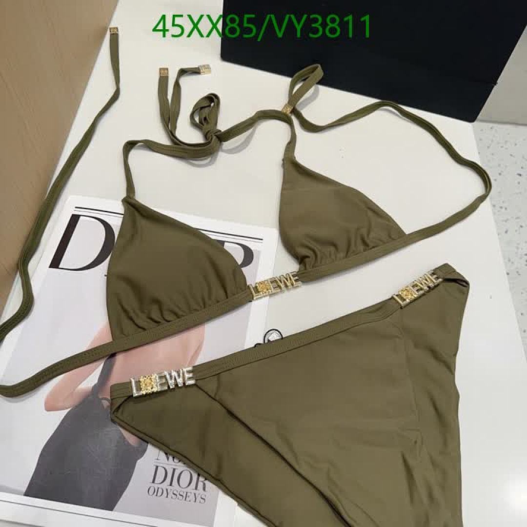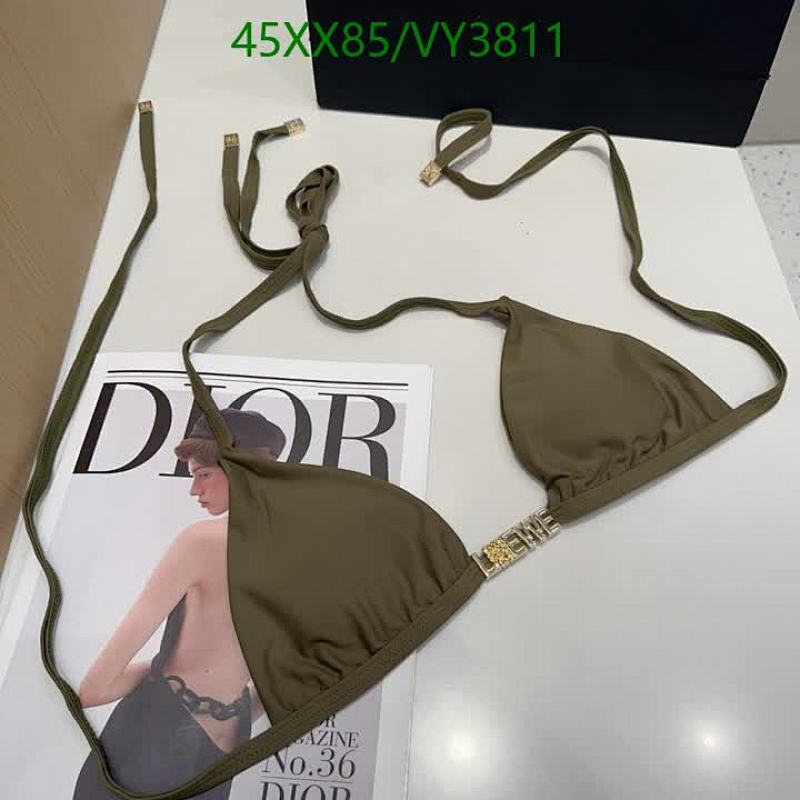 Tags: Designer Triangle Swimsuit, Loewe Khaki Green Bikini, Loewe Logo Swimwear, Luxury Beachwear Set, Womens Designer Bikini