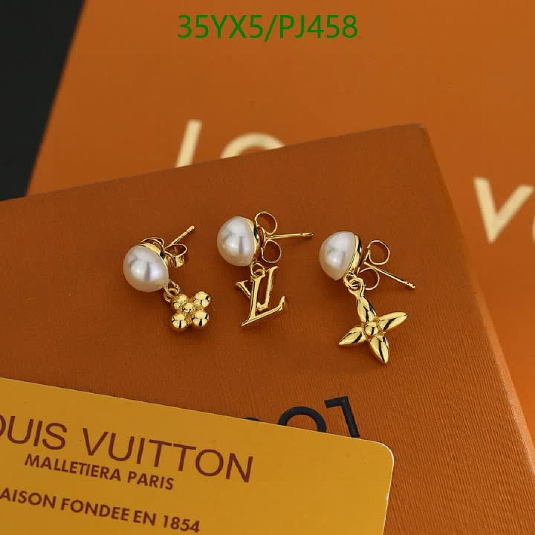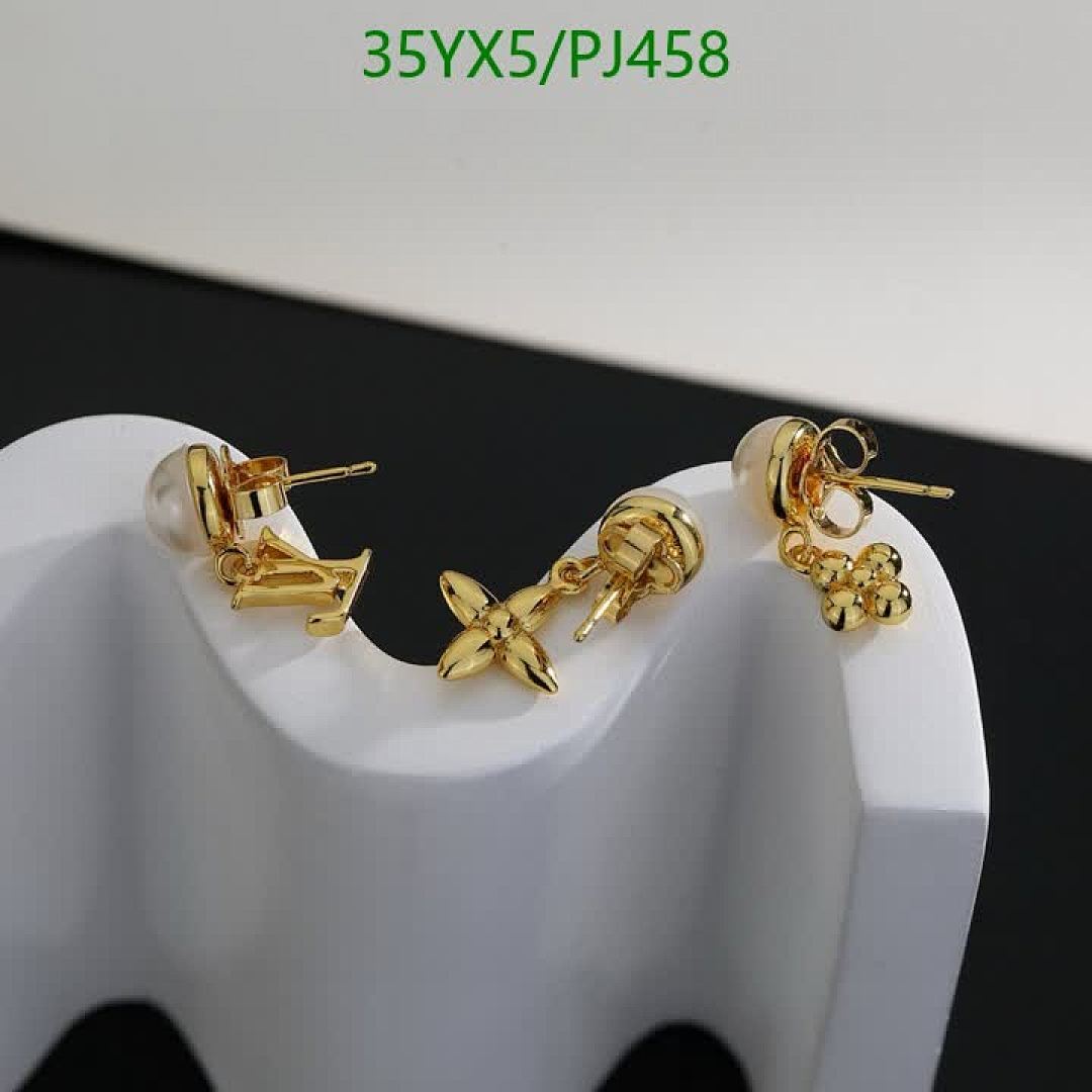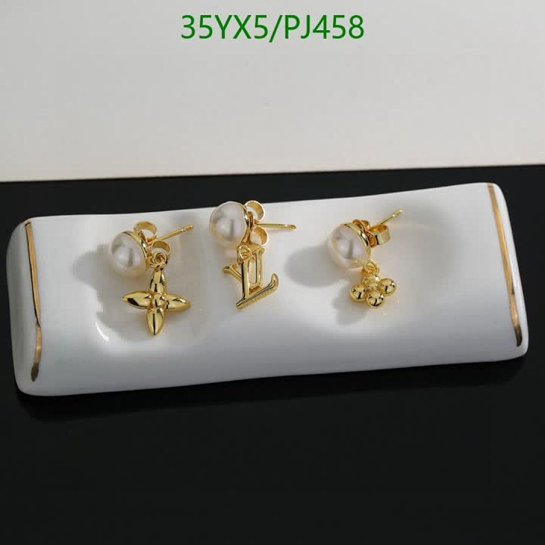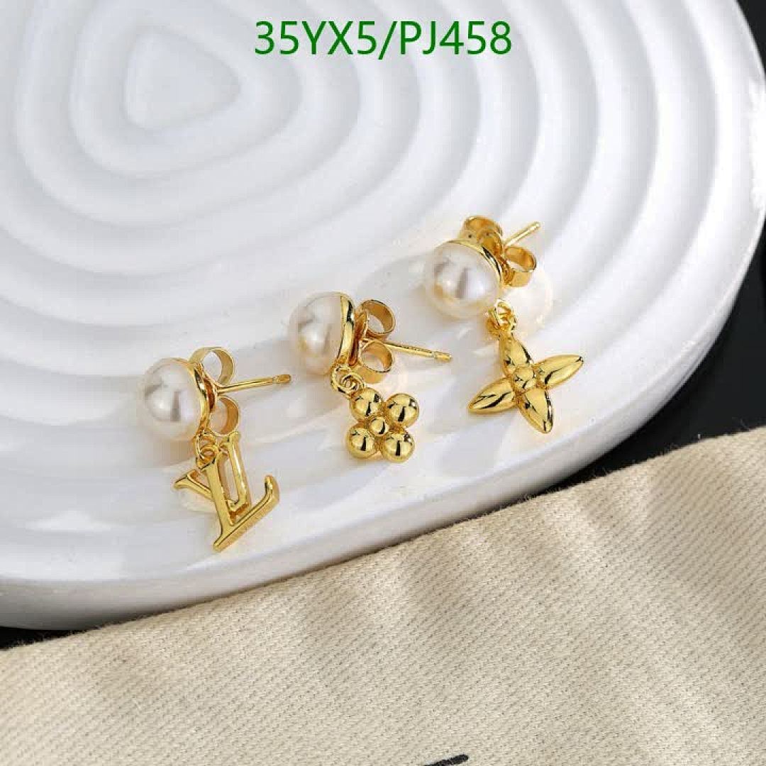 Louis Vuitton 3-in-1 Pearl Drop Earrings - Elegant Gold Finish, PJ458
