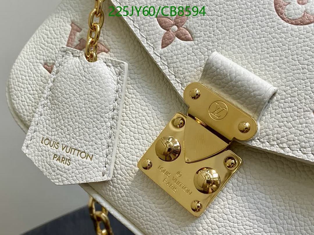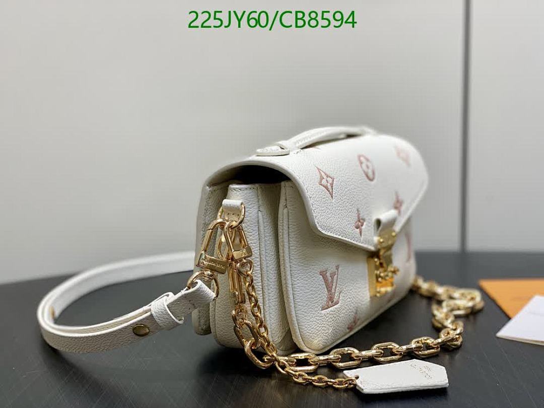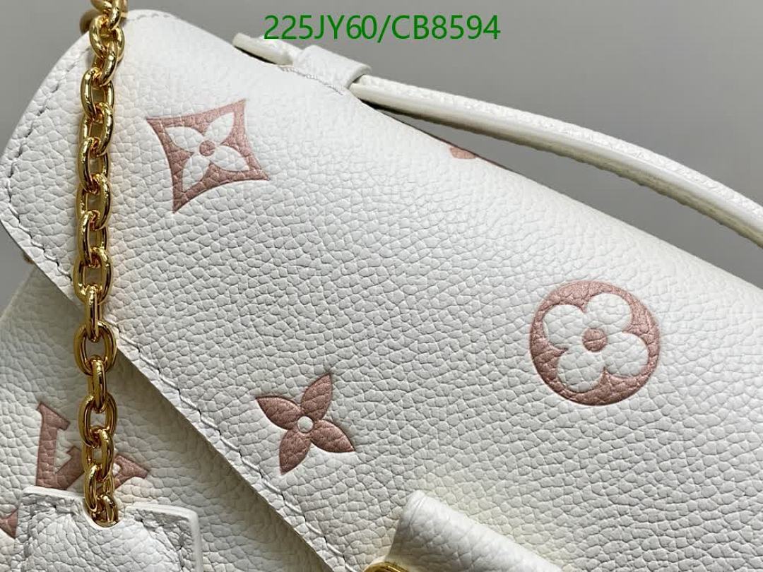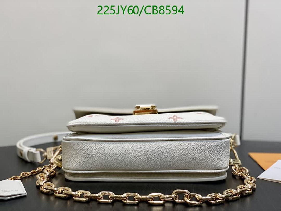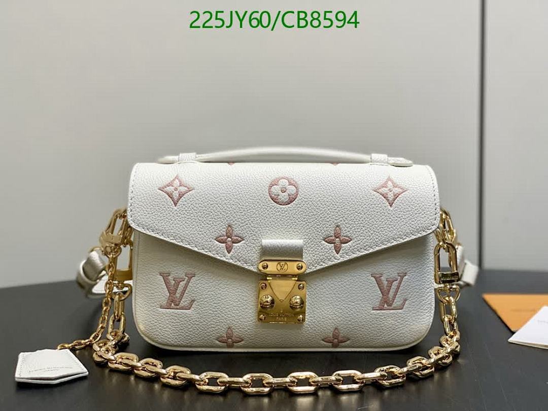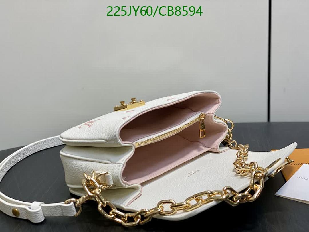 Discover the elegance of this Louis Vuitton crossbody bag, crafted from genuine white leather with exquisite pink monogram detailing. Featuring a luxurious gold chain strap, this mirror-quality handbag is perfect for adding a sophisticated touch to any outfit.