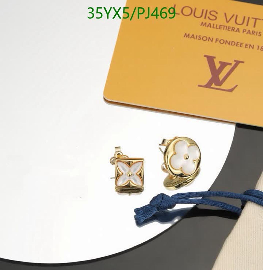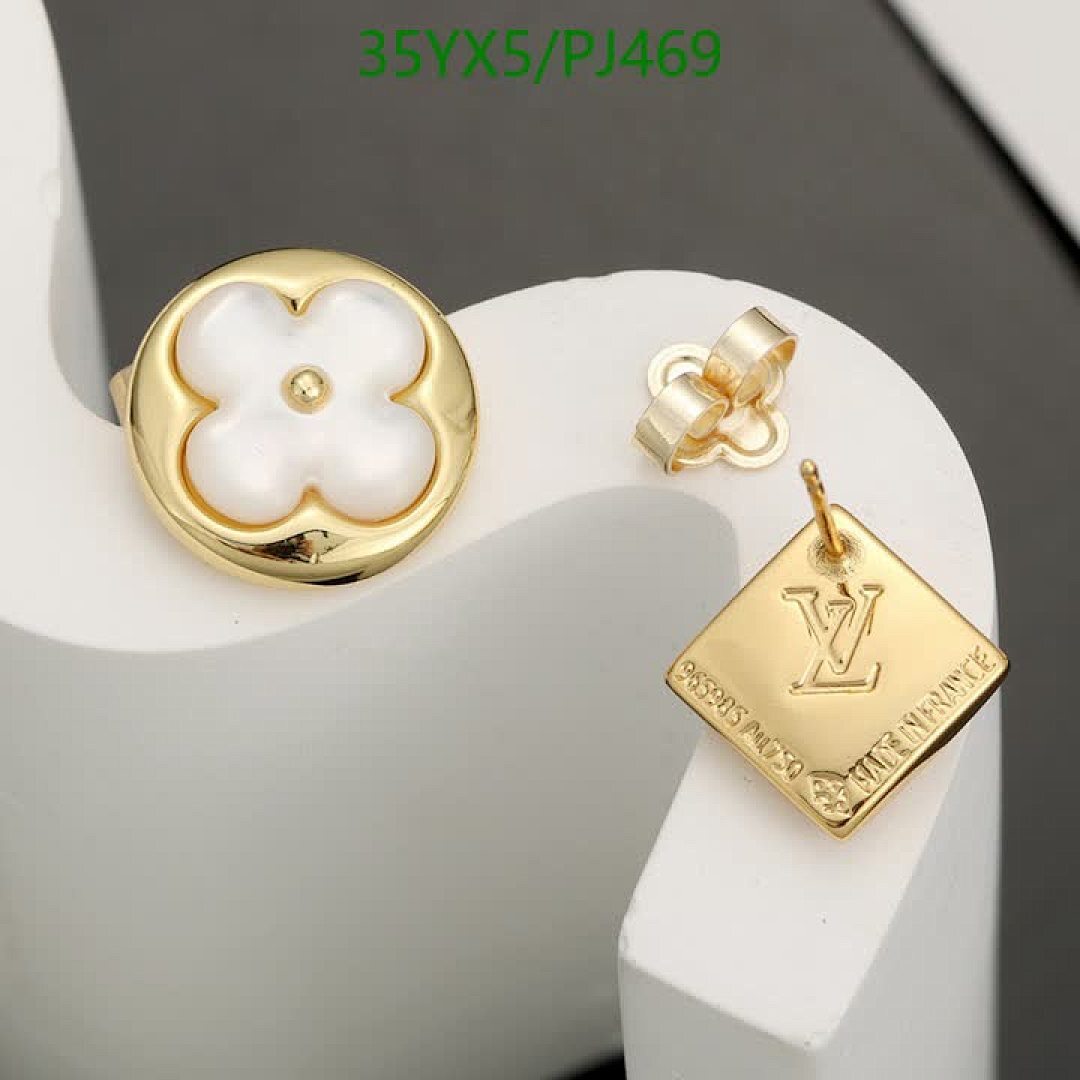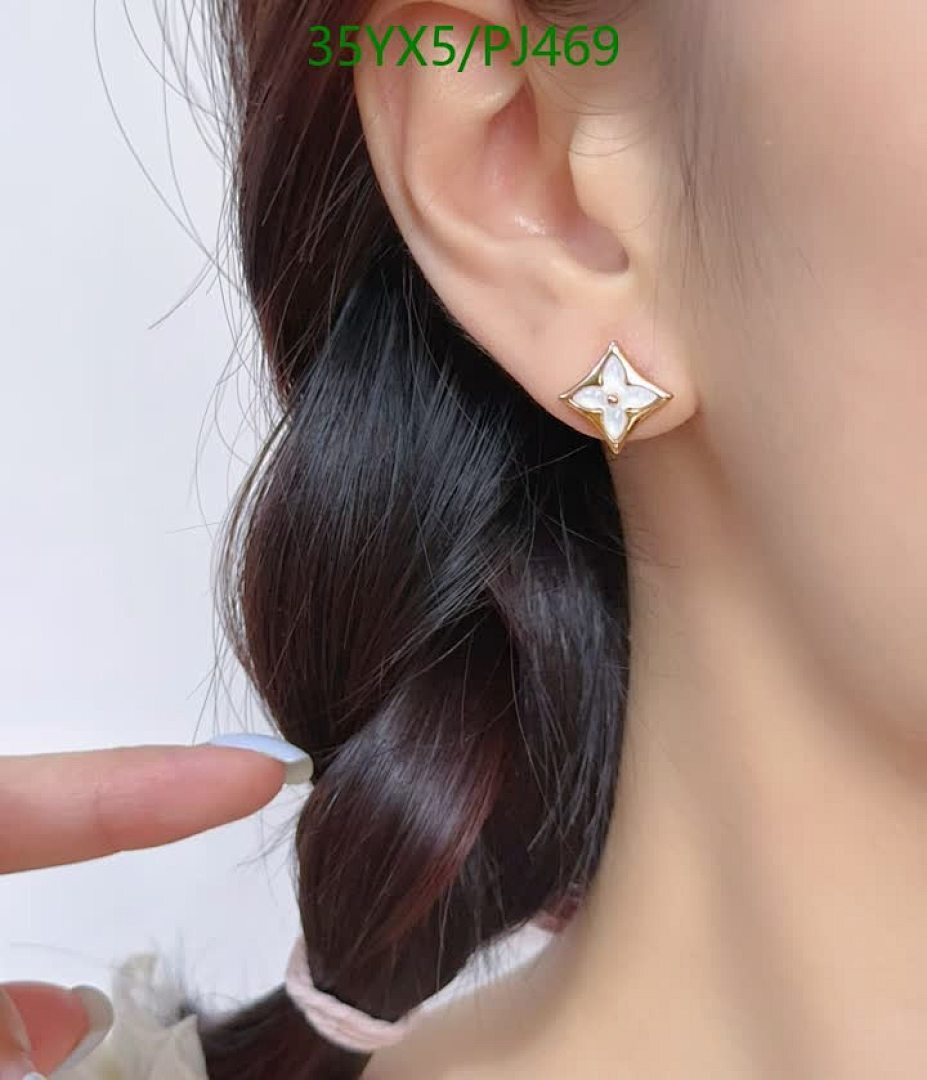 Louis Vuitton Gold Finish Earrings with White Mother-of-Pearl, PJ469