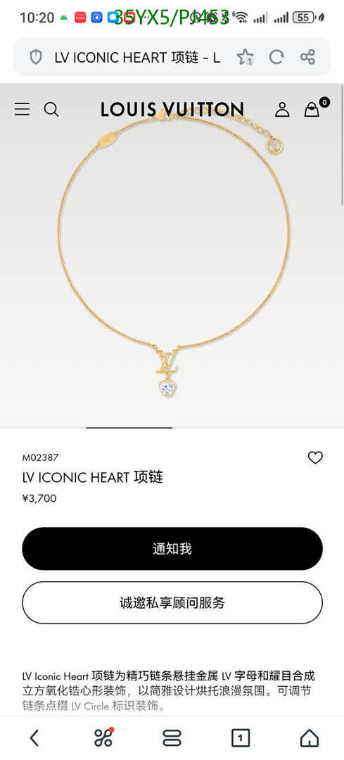 Louis Vuitton Gold-Tone Necklace with Heart Pendant - Elegant and Stylish