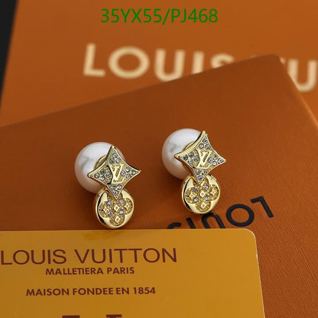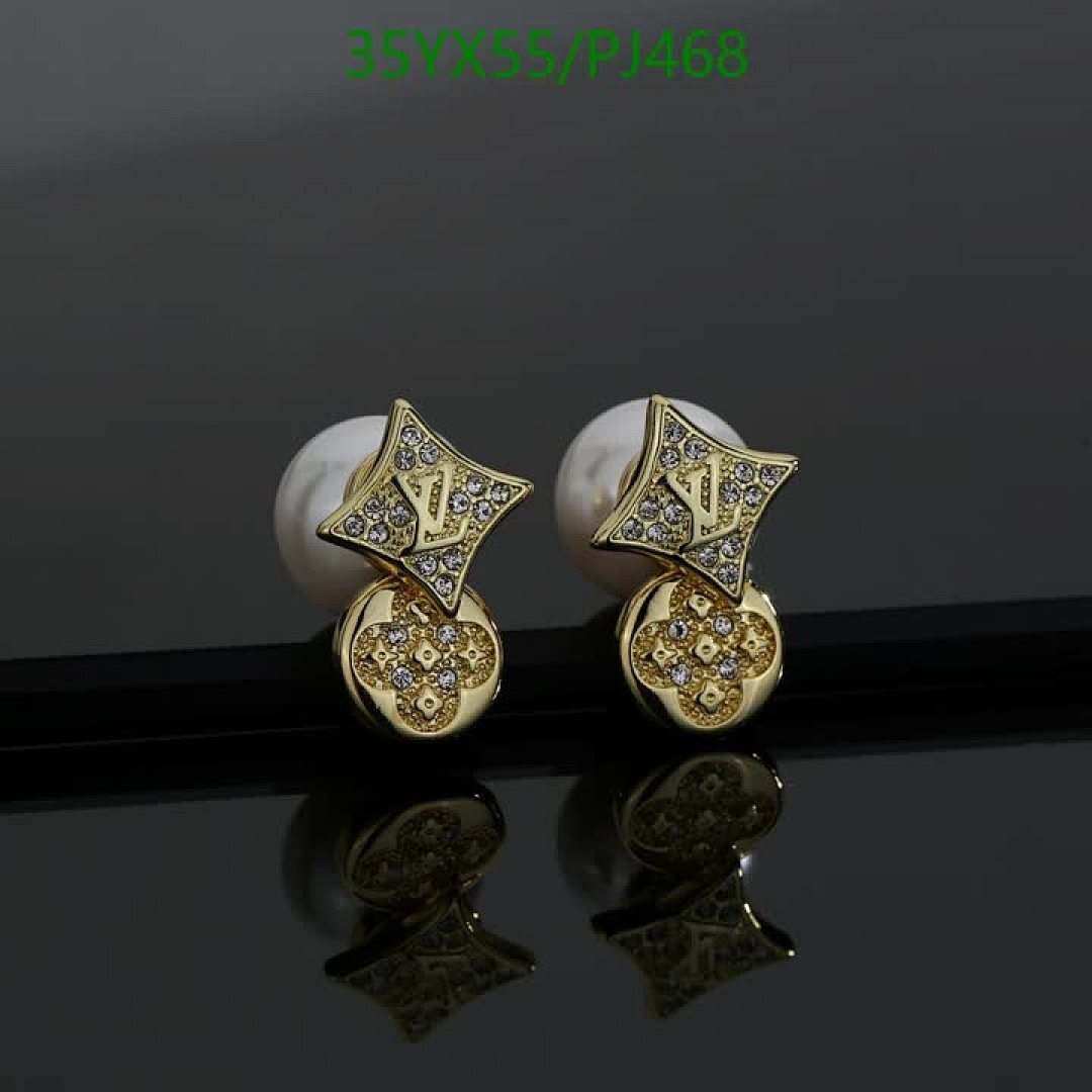 Elevate your style with these elegant Louis Vuitton stud earrings. Featuring gold-tone hardware and lustrous pearl accents.