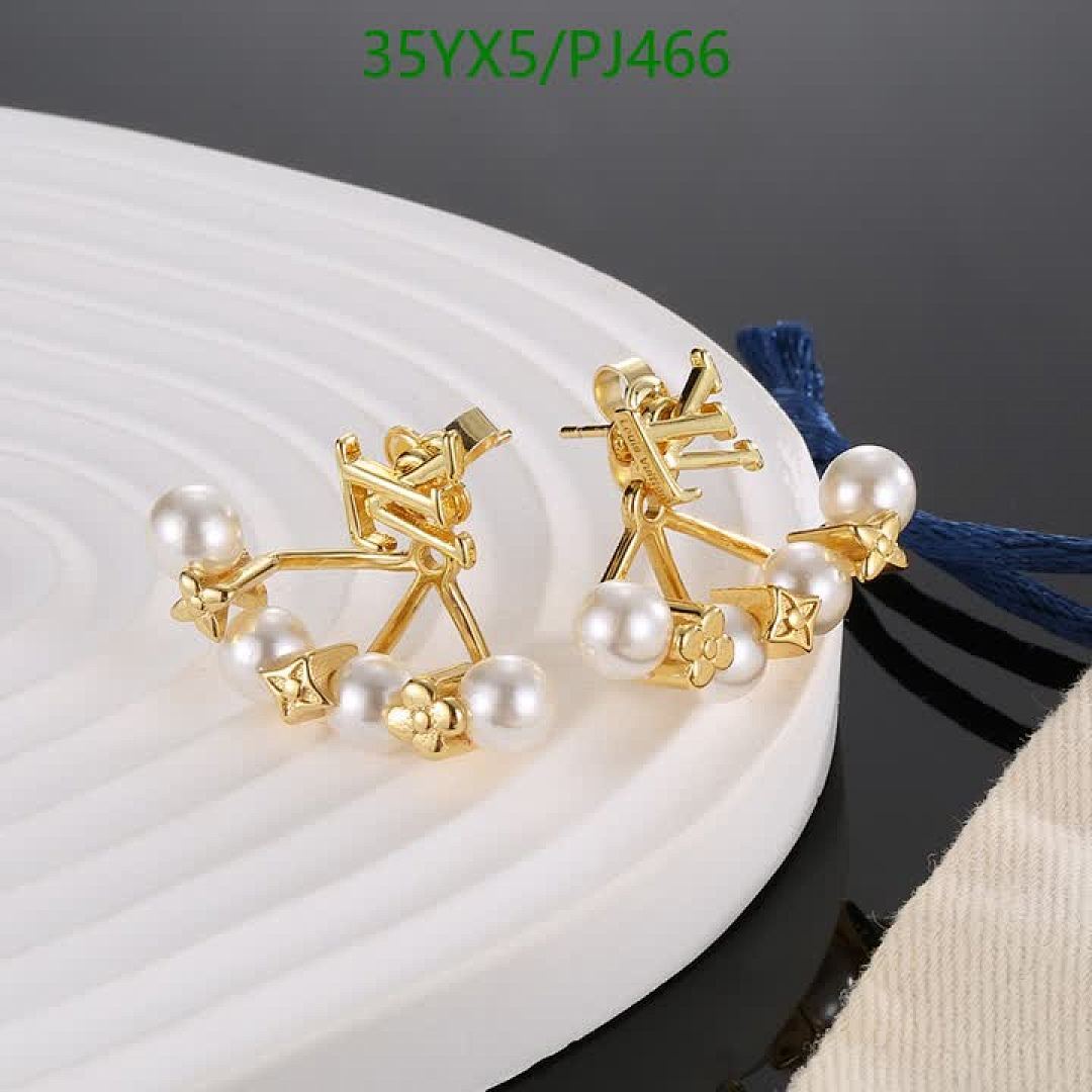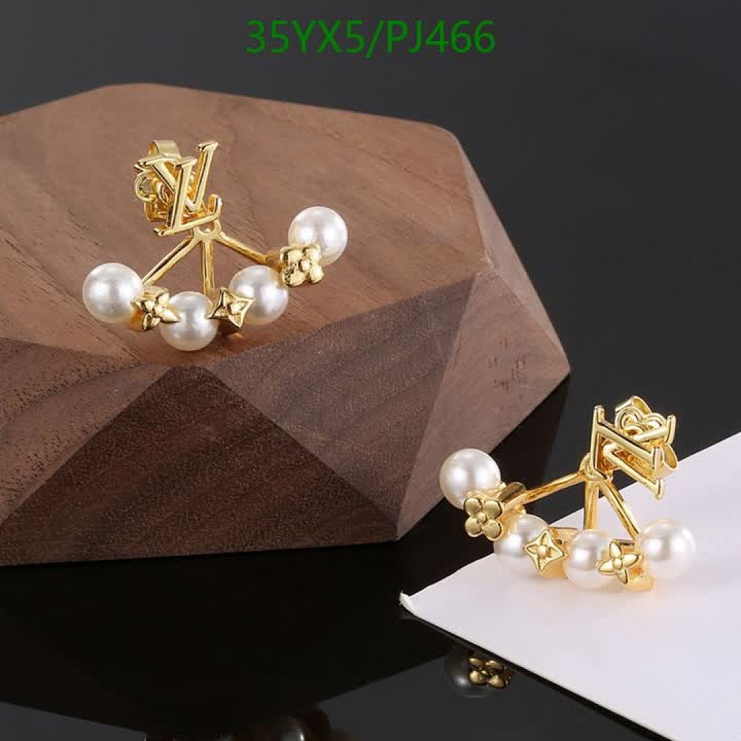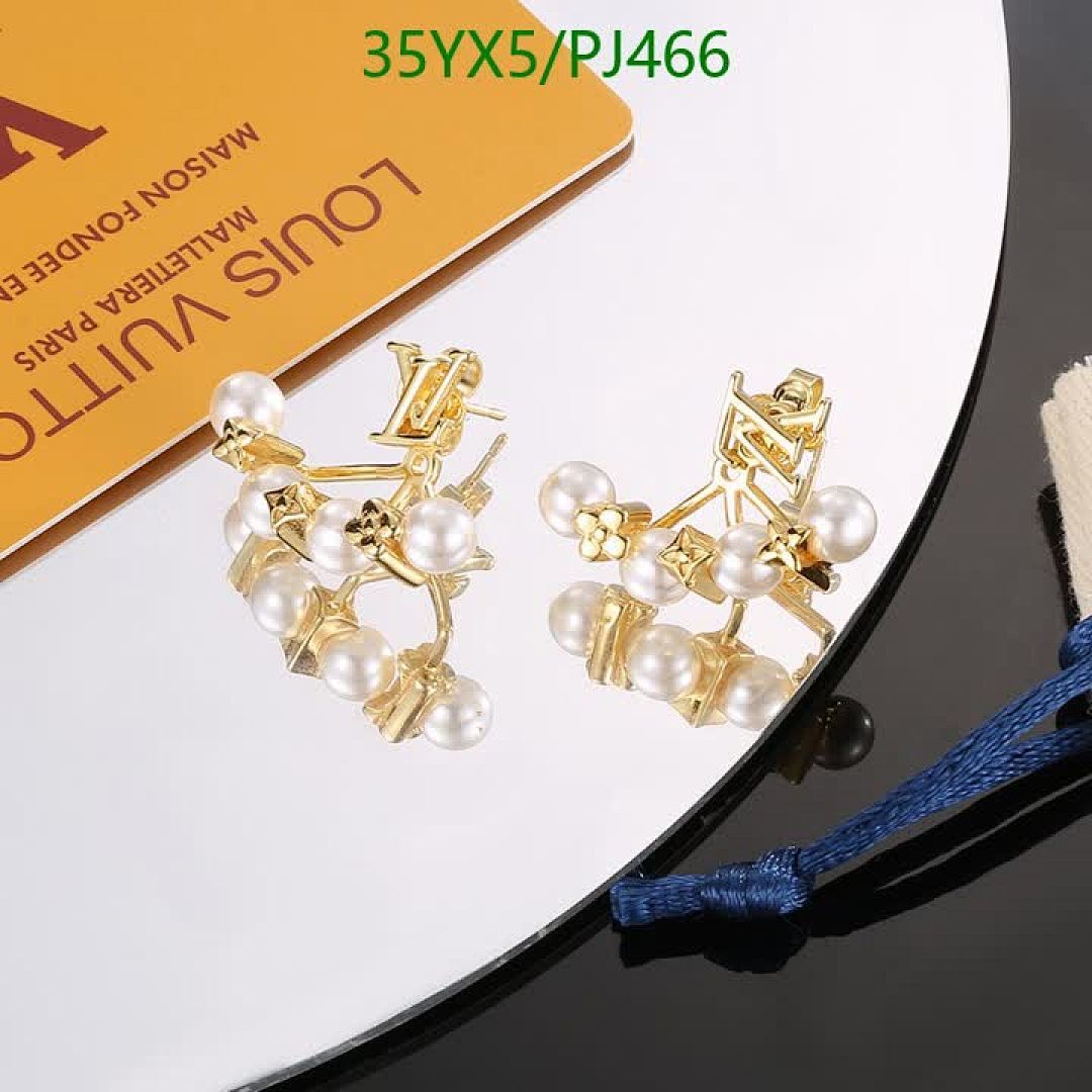Louis Vuitton PJ466 Gold-Tone & Pearl Drop Earrings, Elegant Design