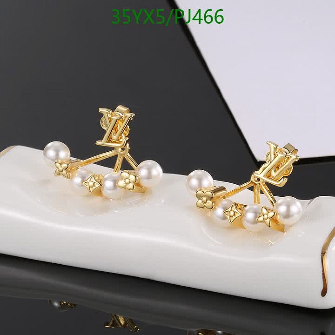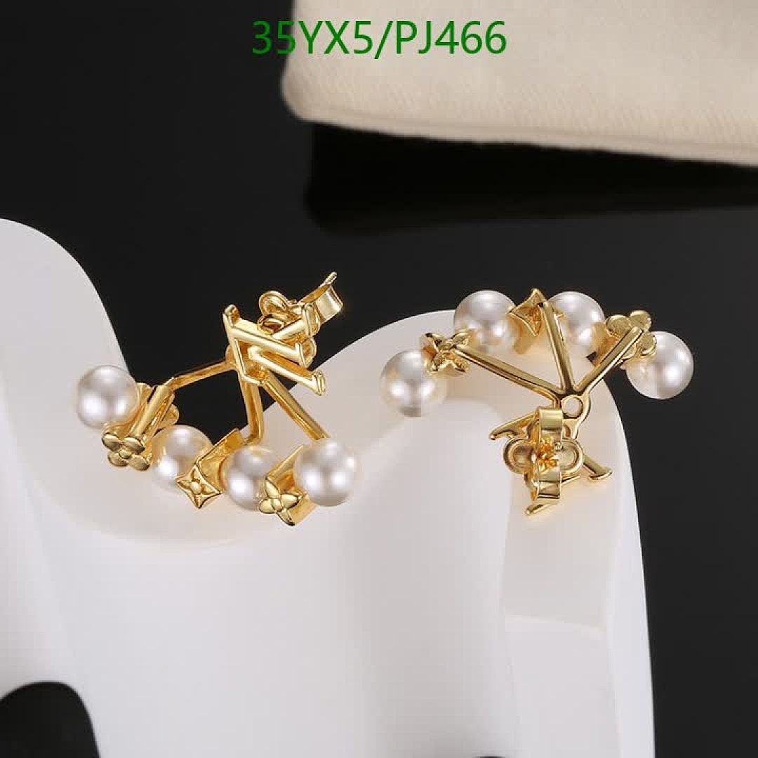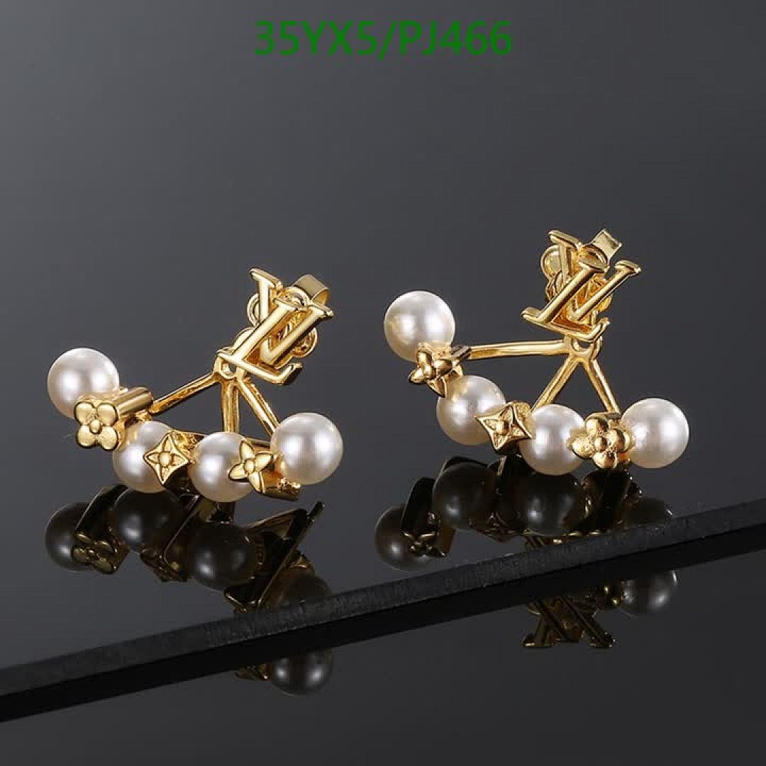 Louis Vuitton PJ466 Gold-Tone & Pearl Drop Earrings, Elegant Design