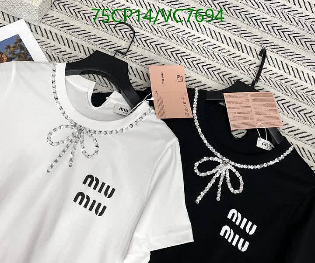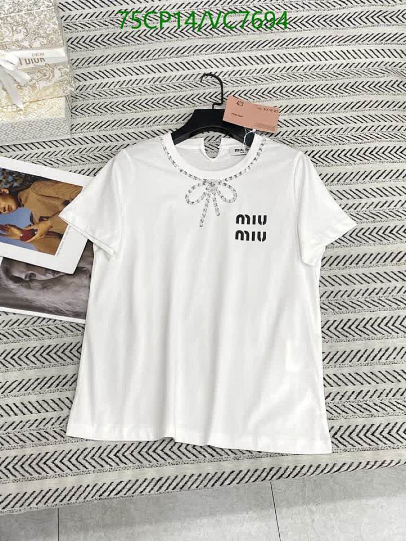 Miu Miu Embellished Logo T-Shirt - Premium Cotton, S-L Sizes, VC7694