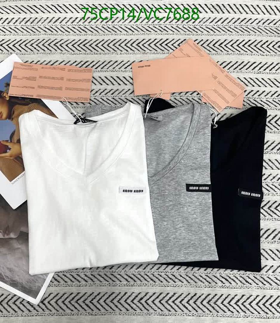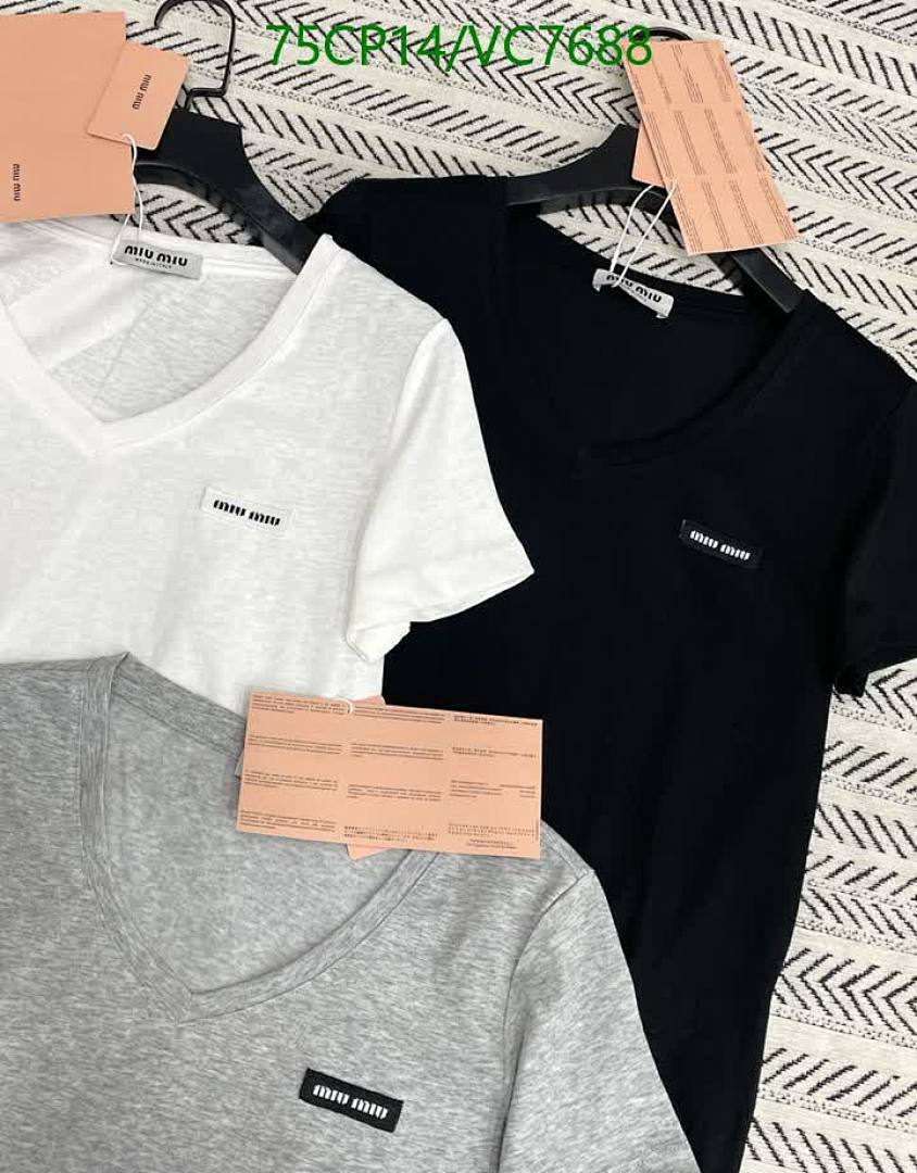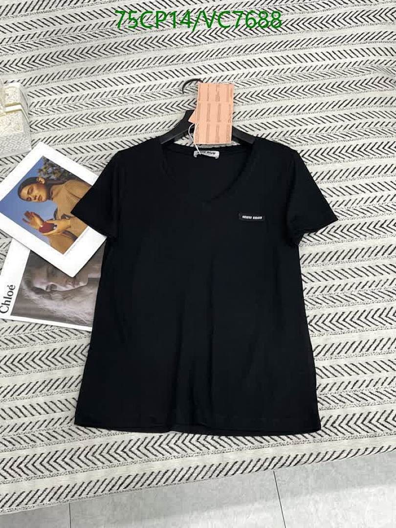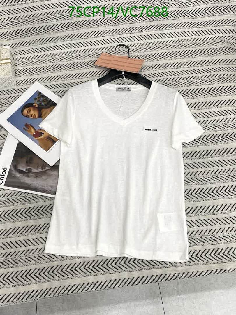 Miu Miu Women's Cotton V-Neck T-Shirt - Comfortable & Stylish Basic Tees